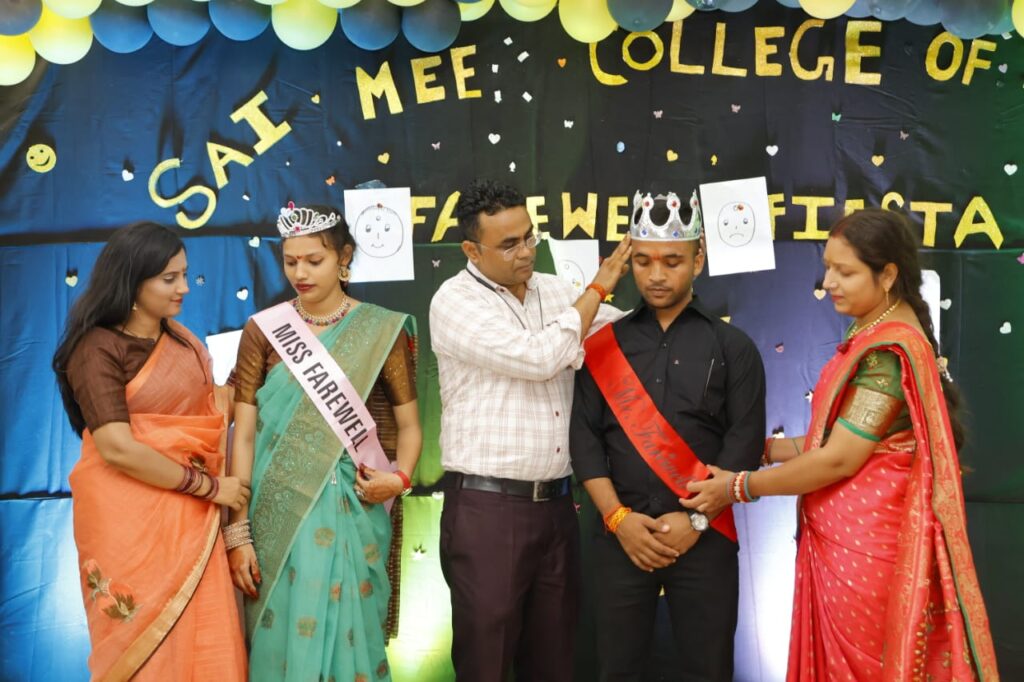 इस दौरान सभी छात्रों ने एक दूसरे को शुभकामनायें दी और खट्टी-मीठी यादों को शेयर किया। डी0फार्मा0 द्वितीय वर्ष के छात्रों के चेहरों पर खुशी तो दिखी, लेकिन कॉलेज से विदाई का दर्द वो छुपा नहीं सकें। सभी छात्र-छात्राओं ने इस अवसर पर विशेष कार्यक्रम प्रस्तुत किये। जिसके आधार पर मिस्टर प्रिंस एवं मिस प्रिंसेस प्रतियोगिता का भी आयोजन किया गया। जिसमें डी0फार्मा0 द्वितीय वर्ष के छात्र शिवम शर्मा ने मिस्टर प्रिंस व छात्रा आविदा ने मिस प्रिंसेस का खिताब अपने नाम किया। इस अवसर पर कॉलेजके चेयरमैन डॉ0 जितेन्द्र सिंह तथा चेयरपर्सन डॉ0 अनीता रंजन ने छात्र-छात्राओं के उज्जवल भविष्य की कामना की एवं उन्हें शुभकामनायें दी। साथ ही साथ प्राचार्य डा0 अर्पित कटियार ने कहा कि मुझे विश्वास है कि हमारे विद्यार्थी आगे चलकर प्रबुद्ध देशभक्त एवं विविध कौशलों से परिपूर्ण सभ्य नागरिक बनेंगे एवं समाज और देश के विकास में अपना यथासंभव सक्रिय योगदान देकर अपने मानव जीवन को सफल बनायेंगे। इस अवसर पर साईं मीर कॉलेज ऑफ फार्मेसी से रश्मी सिंह, खुशबू वर्मा, उमान्श नारायण अवस्थी, विजय गौतम, अरुण कुमार, रोली साहू, शर्मिला मौर्या, अनुज यादव, शिवाकान्त, देवेन्द्र कुमार, रजनीश कुमार, शालिनी श्रीवास्तव, दीपक प्रजापति, रितुकेश कुमार, नैन्शी, काजल, पारुल, शालिनी प्रजापति, आदिती शर्मा, रजत शाक्य एवं रेहान अंसारी आदि लोग मौजूद रहे
