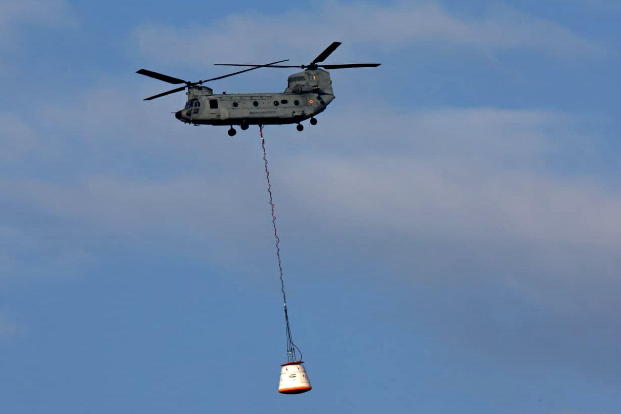 ISRO successfully accomplishes first Integrated Air Drop Test (IADT-01) for end to end demonstration of parachute based deceleration system for Gaganyaan missions. This test is a joint effort of ISRO, Indian Air Force, DRDO,Indian Navy and Indian Coast Guard