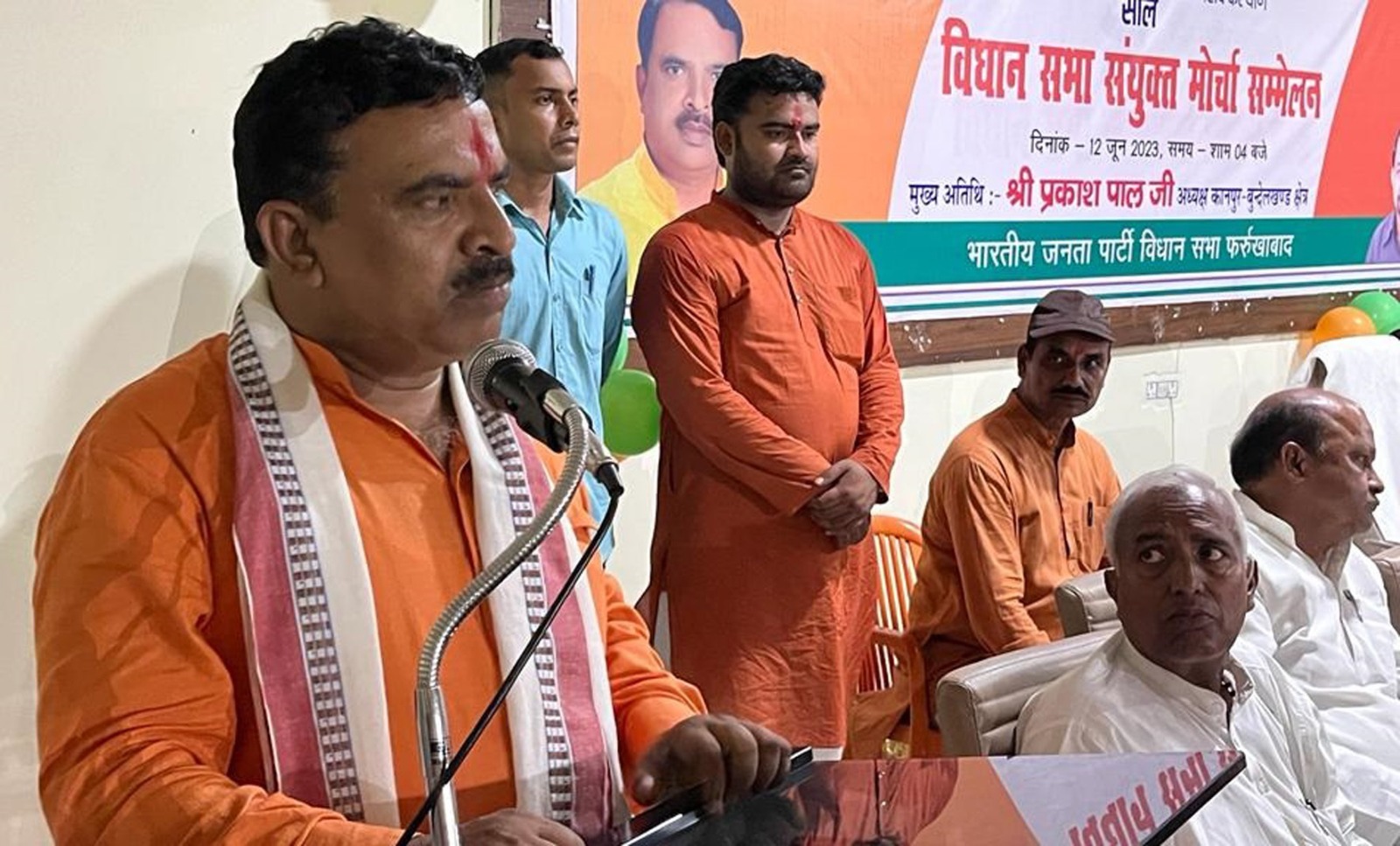 फर्रुखाबाद, समृद्धि न्यूज। सोमवार को आवास विकास कॉलोनी स्थित भाजपा कार्यालय पर महासंपर्क अभियान के अंतर्गत सदर विधानसभा का संयुक्त मोर्चा सम्मेलन जिला अध्यक्ष रूपेश गुप्ता की अध्यक्षता में आयोजित हुआ। जिसमें मुख्य अतिथि के रूप में कानपुर बुंदेलखंड क्षेत्रीय अध्यक्ष प्रकाश पाल ने सम्मेलन को संबोधित किया।