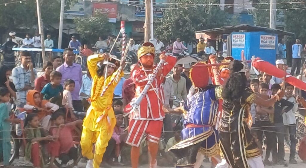 कमालगंज, समृद्धि न्यूज। नगर में चल रही रामलीला ग्राउंड में बुधवार को लक्ष्मण व मेघनाथ की लीला का मंचन किया गया। जिसमें लक्ष्मण द्वारा मेघनाथ का वध करके बुराई पर अच्छाई की जीत का संदेश दिया। वहीं कुंभकर्ण का वध मर्यादा पुरुषोत्तम राम के द्वारा किया गया। जिस पर रामलीला गाउंड्र श्रीराम के जयकारों से गूंज उठा। इस दौरान भारी संख्या में रामलीला देखने के लिए दर्शक उमड़े। वहीं रामलीला कमेटी एवं नगर पंचायत द्वारा सफाई के नाम पर रामलीला ग्राउंड में औपचारिकता निभाकर ज्यादा सफाई करवाने के लिए हाथ खड़े कर दिए। पंचायत कर्मचारी द्वारा बताया गया रामलीला ग्राउंड में पत्थर की बहुत सारी गिट्टियां पड़ी हुई हैं। जिसे साफ नहीं करवाया जा सकता है। रामलीला ग्राउंड की जमीन पर रुई के गद्दे डालकर उन पर युद्ध करवाया जा रहा है। जिससे रामलीला में बने पत्रों के हाथ पैर चोट से सुरक्षित रह सके। वहीं नगर के लोगों में चर्चा रही कि विगत 10 वर्षों पूर्व रामलीला में बनने वाले पात्रों के द्वारा पैरों में जूते नहीं पहने जाते थे, लेकिन विगत 10 वर्षों में नई कमेटी बनने से रामलीला के पात्रों द्वारा पैरों में जूते पहने जाने लगे। पूर्व में पूरे रामलीला ग्राउंड में पात्र भयंकर युद्ध करते हुए दिखाई देते थे और हजारों की संख्या में भीड़ होती थी। रावण दहन से चार दिन पूर्व नगर में एवं नगर के आसपास लगने वाले गांव से ग्रामीणों की लंबी कतारें मेला देखने के लिए आती थीं, लेकिन रामलीला कमेटी की उदासीनता एवं व्यवस्थाओं के कारण आज मेला देखने आने वालों को उंगलिया पर गिना जा सकता है। —————————
