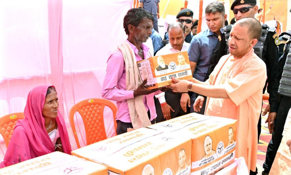सीएम ने बाढ़ से प्रभावित ग्राम पंखियन की मडैया, पट्टी बदनपुर एवं पट्टी बरखा के 260 बाढ़ पीडि़तों को किया राहत सामग्री का वितरण/उनके सुख दुख की ली जानकारी