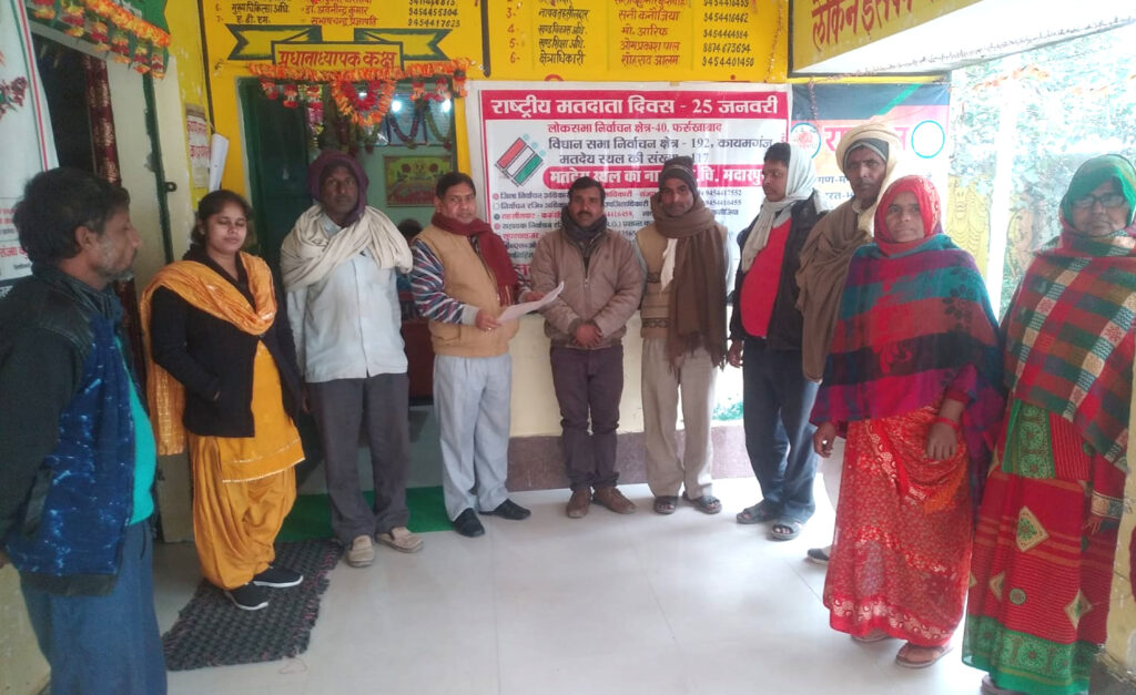फर्रुखाबाद, समृद्धि न्यूज। कायमगंज के प्राथमिक विद्यालय मदारपुर के बूथ संख्या 111 पर पदाभिहित अधिकारी राजकिशोर शुक्ल मतदाता सूची पढक़र सुनाई।