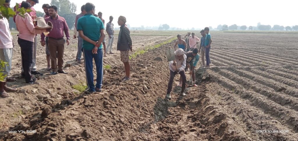 नवाबगंज फर्रुखाबाद विकासखंड अधिकारी ने ग्राम पंचायत के विवादित चकरोड के पैमाइश कराकर शुरू कराया निर्माण कार्य ।