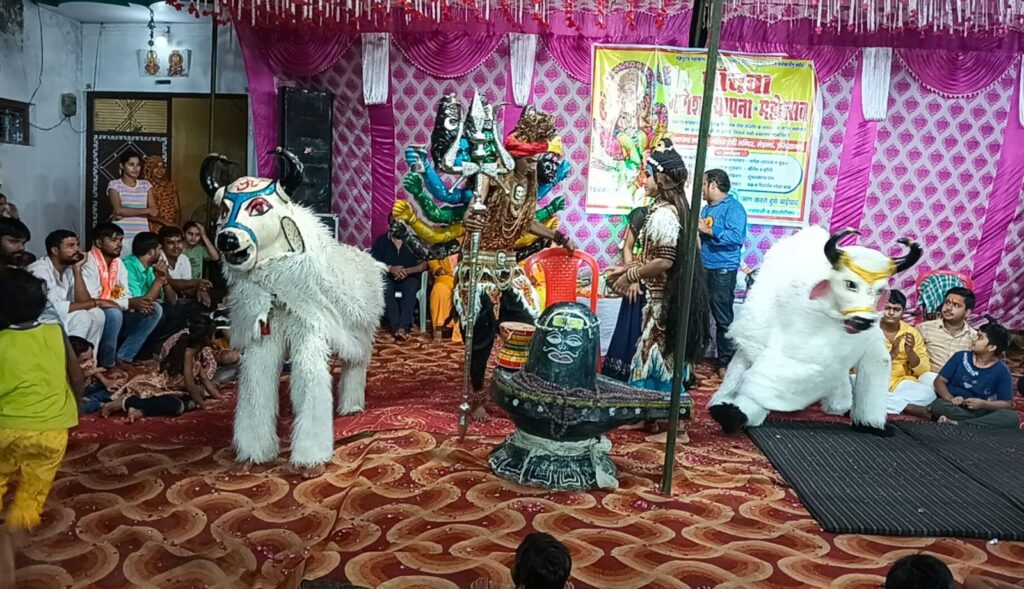 मंझना स्थित मठिया देवी मंदिर पर चल रहे श्री गणेश महोत्सव पर शुक्रवार की शाम को कीर्तन, झांकी का कार्यक्रम किया गया। जिसमें बाहर से आए हुए कलाकारों द्वारा भगवान के स्वरूपों की झांकियां निकाली गई। झांकियों ने भक्तों का मन मोह लिया। गणपति बप्पा के दरबार में झांकियों का विशेष कार्यक्रम आयोजित किया गया। इसमें भगवान भोलेनाथ, माता पार्वती, श्रीकृष्ण व सुदामा के स्वरूप में कलाकारों ने सांस्कृतिक कार्यक्रम प्रस्तुत किए। वहीं गायक श्रद्धा पंडित के द्वारा मैंने मोहन को बुलाया बो आता होगा। वहीं गायक आर्यन प्रवेश शुक्ला ने खाटूश्याम, मां दुर्गा के भजनों पर समां बांध दिया। जिससे भक्तगण भावविभोर हो उठे। इस मौके पर विनीत, हैप्पी, चंद्रप्रकाश, सुधीश, मोनू आदि भक्तगण मौजूद रहे।
