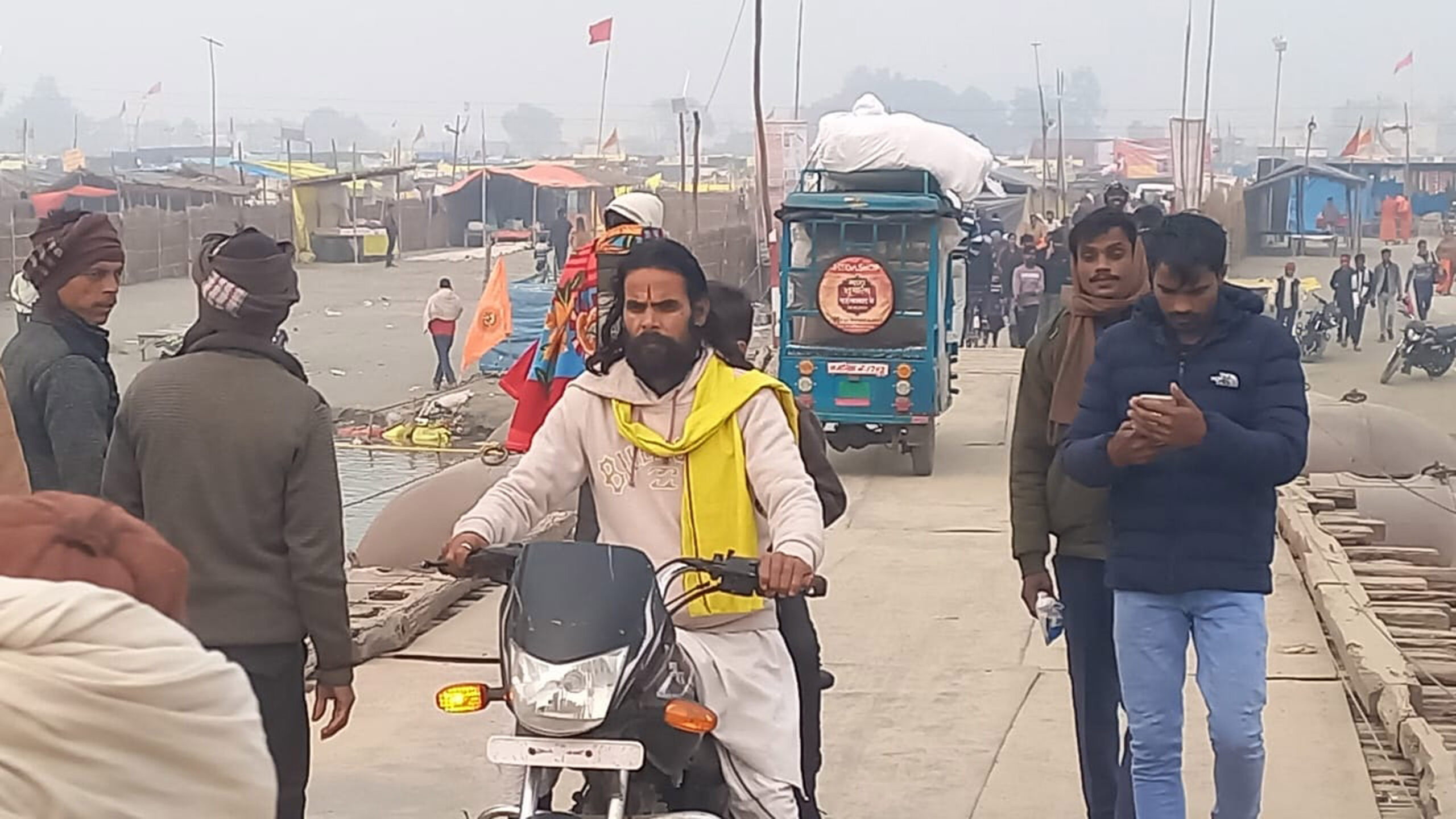 पैदल चलने वालों के लिए बनाया गया पुल, लेकिन गुजर रहे टेंपो/ई-रिक्शा