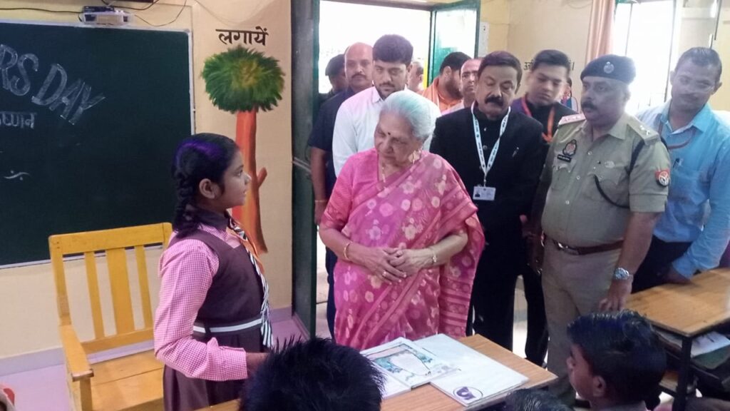 समृद्धि न्यूज़ लखनऊ।प्रदेश की राज्यपाल आनंदीबेन पटेल मंगलवार को जनपद अम्बेडकरनगर में अपने एक दिवसीय भ्रमण पर हैं।भ्रमण के दौरान राज्यपाल ने आदर्श ग्राम चिंतौरा के प्राइमरी विद्यालय, ब्लॉक टाण्डा का निरीक्षण किया। राज्यपाल ने विद्यालय में अध्ययन कर रहे बच्चों से उनके पाठों की जानकारी ली,सस्वर कविता पाठ सुना और उनके पाठ्यक्रम से सवाल भी किए।उन्होंने स्मार्ट क्लास का निरीक्षण करके,स्मार्ट स्क्रीन के माध्यम से बच्चों के शिक्षण का अवलोकन किया। विद्यालय में पुस्तकालय कक्ष का निरीक्षण करते हुए राज्यपाल ने पुस्तकालय में उपलब्ध पुस्तकों की संख्या,विषयगत विविधता, बच्चों में पुस्तकों के प्रति रूचि की जानकारी लेते हुए अध्यापकों से बच्चों में पुस्तक पढ़ने की प्रवृत्ति को बढ़ावा देने पर जोर दिया। विद्यालय में राज्यपाल ने रसोई घर की व्यवस्थाओं और मध्याह्न भोजन का भी निरीक्षण किया।