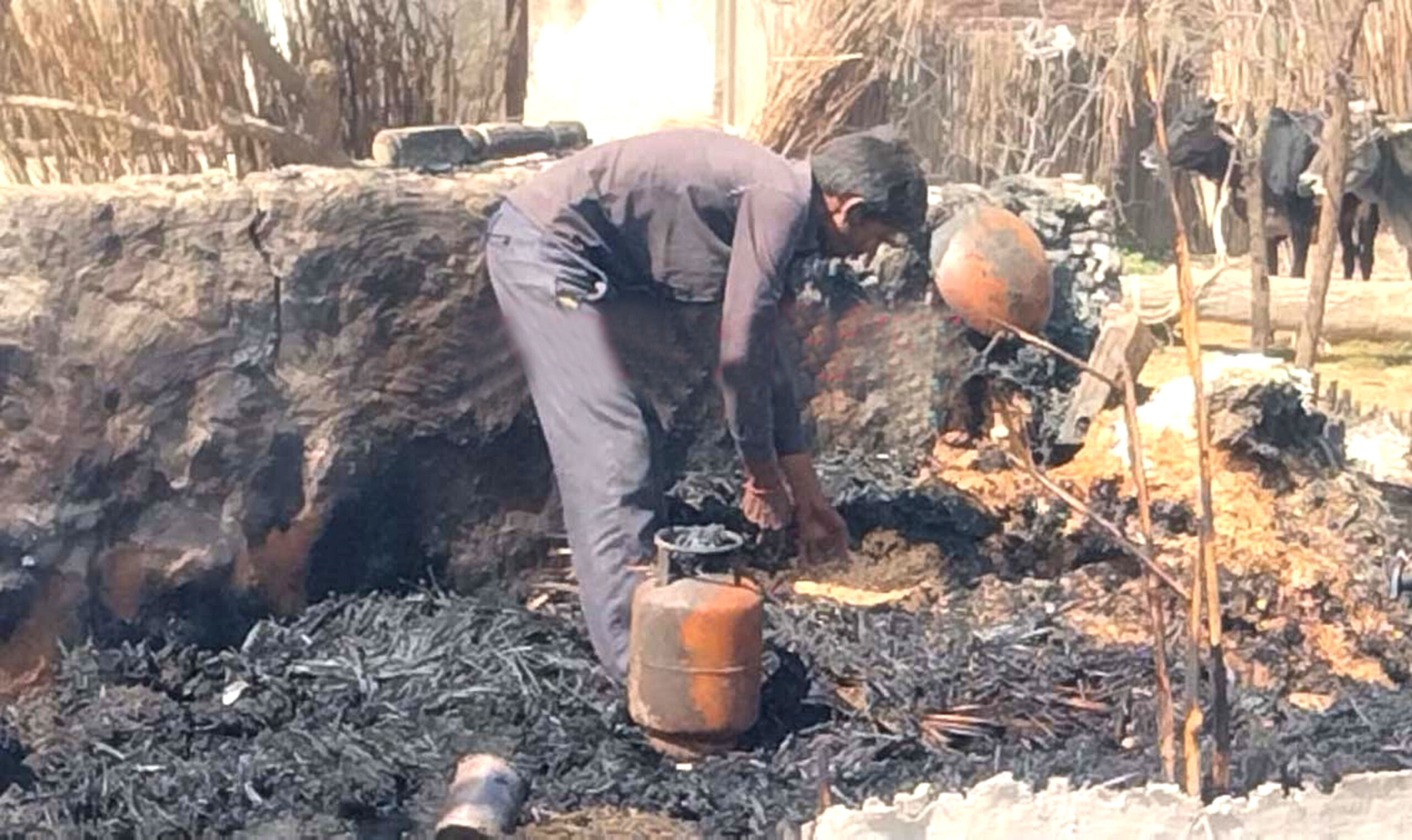 आग से झोपड़ी की गृहस्थी जली, दो बकरे व नकदी भी जली