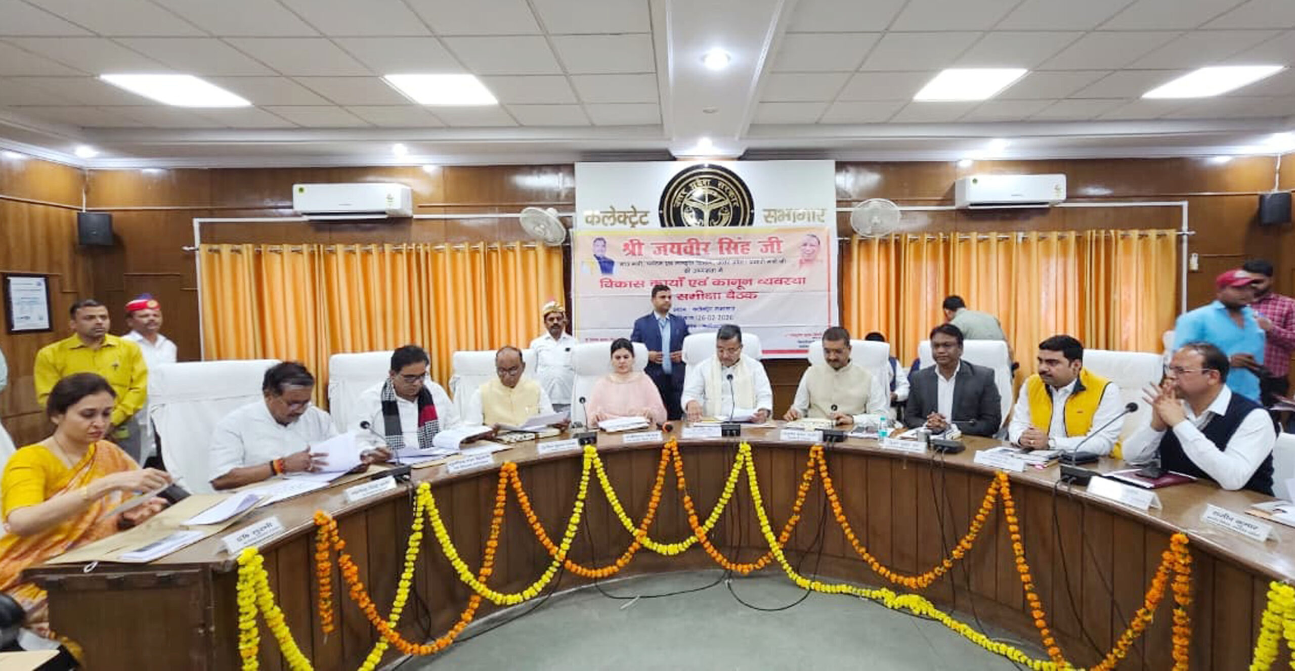 फर्रुखाबाद, समृद्धि न्यूज। मंत्री पर्यटन एवं संस्कृति विभाग/ प्रभारी मंत्री जयवीर सिंह की अध्यक्षता में क्लेक्ट्रेट सभागार में विकास कार्यों एवं कानून व्यवस्था की समीक्षा बैठक का आयोजन किया गया। मंत्री ने कृषि विभाग के सौजन्य से श्यामचरण भूलनपुर चिरपुरा कामलगंज व प्रदीपकुमार जिठौली राजेपुर को को 10 लाख की कीमत के कस्टम हायरिंग सेंटर की चाबी, जिस पर 04 लाख की सब्सिडी मिलती है प्रदान की। मंत्री ने मत्स्य विभाग के लाभार्थी को मोपोड की चाबी प्रदान की। दिव्यांगजन सशक्तिकरण विभाग के सौजन्य से 05 लाभार्थियों को ट्राई साइकिल दी गई।प्रभारी मंत्री ने पर्यटन विभाग द्वारा बनाया गया फर्रुखाबाद के पर्यटन स्थलों का गाइड मैप जारी किया। समूह सदस्यों द्वारा मंत्री को हर्बल गुलाल भेंट किया। मंत्री ने स्किल इंडिया कॉम्पटीशन 2025 में पुरुस्कार जीतने बाले आई0टी0आई फर्रुखाबाद के छात्रों को 02 स्वर्ण व 01 रजत प्राप्त करने पर सम्मानित किया गया। मुख्यमंत्री आवास योजना ग्रामीण के 02 लाभार्थियों को आवास की चाबी प्रदान की गई। उ0प्र0राज्य ग्रामीण आजीविका मिशन के 226 स्वयं सहायता समूहों की प्रतिनिधि रेनू व रूपा को 05.65 लाख का प्रतीकात्मक चेक प्रदान किया। बाबा साहब अम्बेडकर रोजगार प्रोत्साहन योजना वित्तीय वर्ष 2025-26 के 05 लाभार्थियों को स्वीकृति पत्र वितरित किये गए। सोलर पंप के लिये चयनित 03 लाभार्थियों को स्वीकृति पत्र वितरित किये। वृद्धावस्था पेंशन के 05 लाभार्थियों को स्वीकृति पत्र दिये गए। इसके बाद मुख्यमंत्री बाल सेवा योजना सामान्य के 02 बच्चों को प्रमाणपत्र वितरण किया गया। मंत्री ने पिछड़ा वर्ग कल्याण विभाग की शादी अनुदान योजना के 05 लाभार्थियों को स्वीकृति पत्र प्रदान किये गये। मुख्यमंत्री युवा उद्यमी विकास अभियान के अंतरर्गत पांच लाभर्थियों को चेक वितरित कियें। मंत्री ने कृषि विभाग के 05 लाभार्थियों को मूंग बीज मिनी किट प्रदान की गई। मंत्री ने विगत समीक्षा बैठक में दिये गये निर्देशों के अनुपालन की समीक्षा की। मंत्री ने सी0एम0डैशबोर्ड में खराब प्रदर्शन करने बाले विभागों की समीक्षा की व प्रदर्शन सुधारने के निर्देश दिये। मंत्री ने मुख्य विकास अधिकारी को पंचायती राज विभाग के 15 वित्त आयोग में बी रैंक आने पर खुद पर्यवेक्षण करने के निर्देश दिये। विधायक कायमगंज डॉ0 सुरभि ने कन्या सुमंगला योजना का प्रचार प्रसार न होने की शिकायत की। मंत्री ने ग्राम पंचायत स्तर तक प्रचार प्रसार करने के लिये निर्देशित किया। इटावा बरेली हाइवे की जाँच दोबारा कमेटी बनाकर कराने के लिये मंत्री निर्देशित किया। कार्यदाई संस्थाओं को सभी कार्य टाइमलाइन के अनुसार पूरे करने के लिये निर्देशित किया। मंत्री ने बताया गया कि 