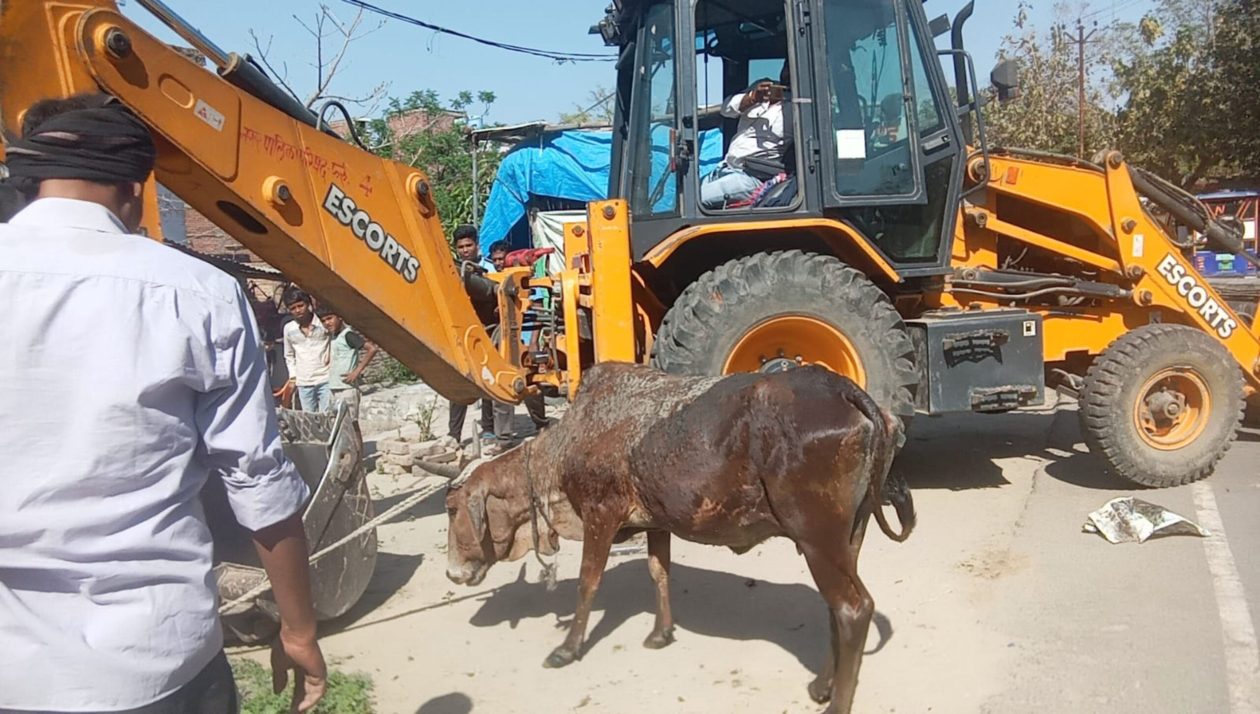 डीएम को सूचना देने के बाद मौके पर पहुंची जेसीबी, गाय को निकाला