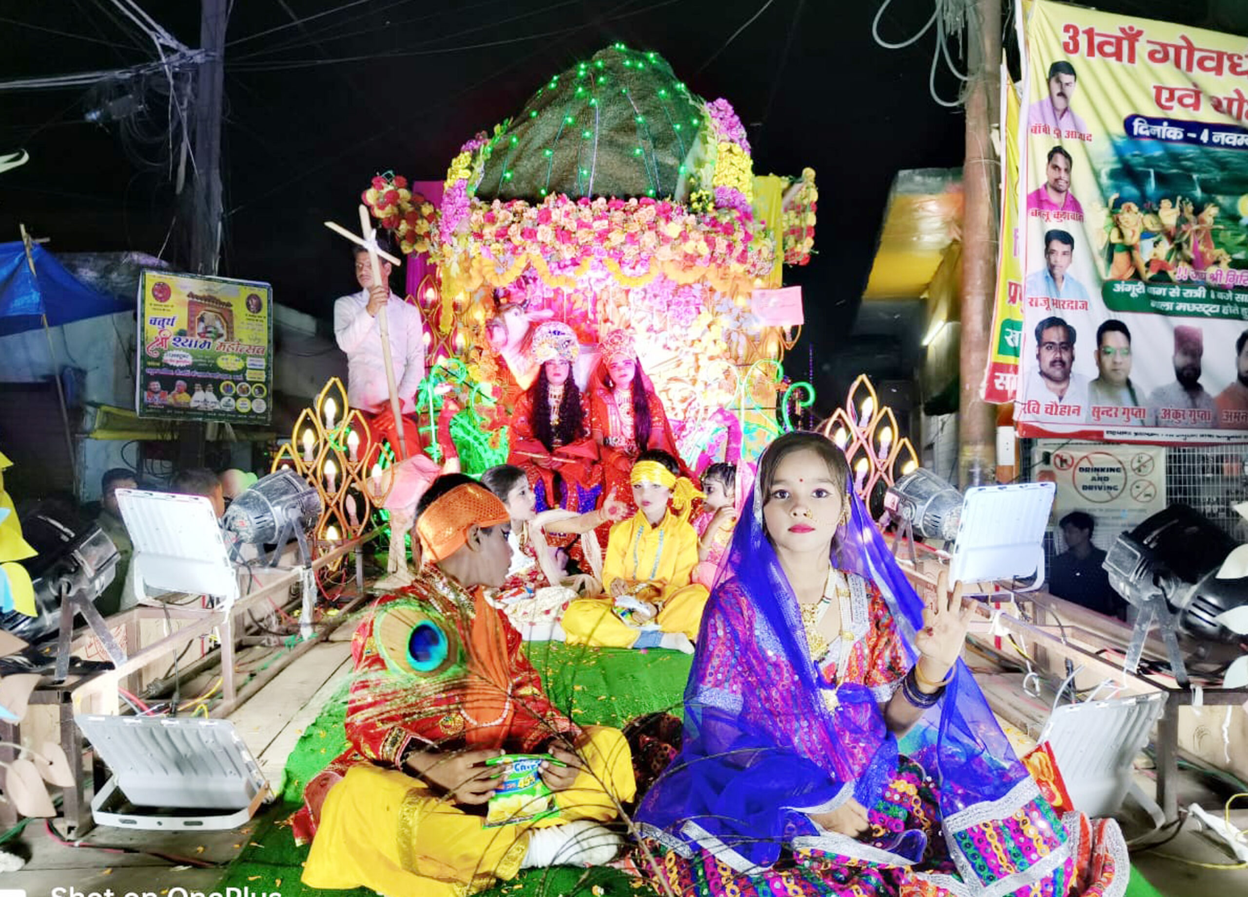 नगर में धूमधाम से निकाली गई गोवर्धन महाराज की शोभायात्रा