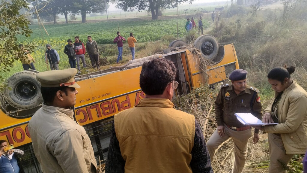 जानकारी के अनुसार बुधवार को जनपद शाहजहॉपुर के जलालाबाद स्थित रोजी पब्लिक स्कूल की बस करीब ३७ बच्चों को लेकर स्कूल जा रह थी, तभी थाना अमृतपुर के ग्राम नगला हूसा के निकट अचानक सामने आये एक बाइक सवार को बचाने में बस अनियंत्रित होकर खाई में पलट गयी। बस पलटते ही बच्चों में चीख पुकार मच गयी। बस में सवार जनपद शाहजहाँपुर के मिर्जापुर जरियनपुर के ग्राम ढाई निवासी 15 वर्षीय कक्षा 10 के छात्र आदित्य पुत्र वीरेंद्र राजपूत व उसकी बहन 12 वर्षीय दिव्यांशी कक्षा 7 की छात्रा घायल हो गयी। घटना के बाद मौके पर स्थानीय लोग पहुंच गये। वहीं सूचना मिलने पर एसडीएम रावेन्द्र सिंह, अपर पुलिस अधीक्षक डॉ0 संजय कुमार सिंह, क्षेत्राधिकारी रविंद्रनाथ राय, थानाध्यक्ष मिनेश पचौरी मौके पर पंहुचे और घायल छात्र आदित्य व बहन दिव्यांशी को उपचार के लिए सीएचसी भेजा। इसके अलावा बस में सवार छात्र आर्यन अंकित, शुभांशु, रणदीप, आशी, महक, अलका, राम, श्याम, गौरी आदि सभी छात्र चालक पर तेजी से बस चलाने का आरोप लगा रहे थे। अधिकारियों ने बच्चों के परिजनों को उनके सुपुर्द किया। वहीं थानाध्यक्ष मीनेश पचौरी ने बस चालक सुनील पुत्र रामपाल सिंह निवासी थरिया थाना मिर्जापुर को तत्काल हिरासत में ले लिया। छात्रों के पारिवारिक जनों ने विद्यालय प्रबंधन कमेटी पर गंभीर आरोप लगाए हैं। उन्होंने कहा कि कई बार चालक की शिकायत की गई। फिर भी कोई कार्यवाही नहीं की गई। उधर चालक सुनील का कहना है कि बाइक को बचाने के चक्कर में बस अनियंत्रित हुई थी। बस पलटने से ग्रामीणों ने सरकार पर उंगली उठानी शुरू कर दी है। विद्यालय सत्यमोहन पाण्डेय का बताया जा रहा है। ग्रामीणों का कहना है कि शाहजहांपुर जनपद में तीन-तीन मंत्रियों के होते हुए भी बच्चों को 25 किलोमीटर का सफर ना तय करके 70 किलोमीटर का सफर तय करना पड़ रहा है, जबकि अगर कोलाघाट का पुल समय से शुरू हो गया होता तो बच्चों को इतना सफर न तय करके कुछ ही देर में विद्यालय पहुंच सकते थे। वहीं जिला पंचायत सदस्य अजय कुमार चौहान भी मौके पर पहुंचे और बच्चों का हाल जाना।