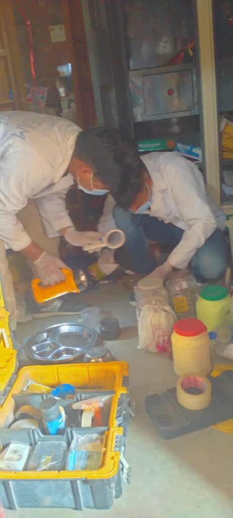 पुलिस व फॉरेंसिक टीम ने पहुंचकर की जांच पड़ताल चोर पड़ोसियों के बाहर से कुंडी लगाकर हुए फरार