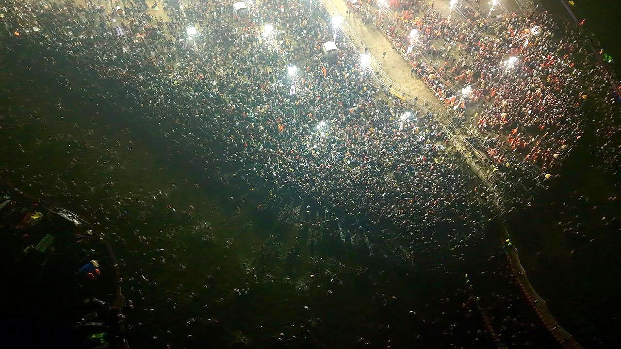 संगम पर पुष्प वर्षा का अद्भुत दृष्य
