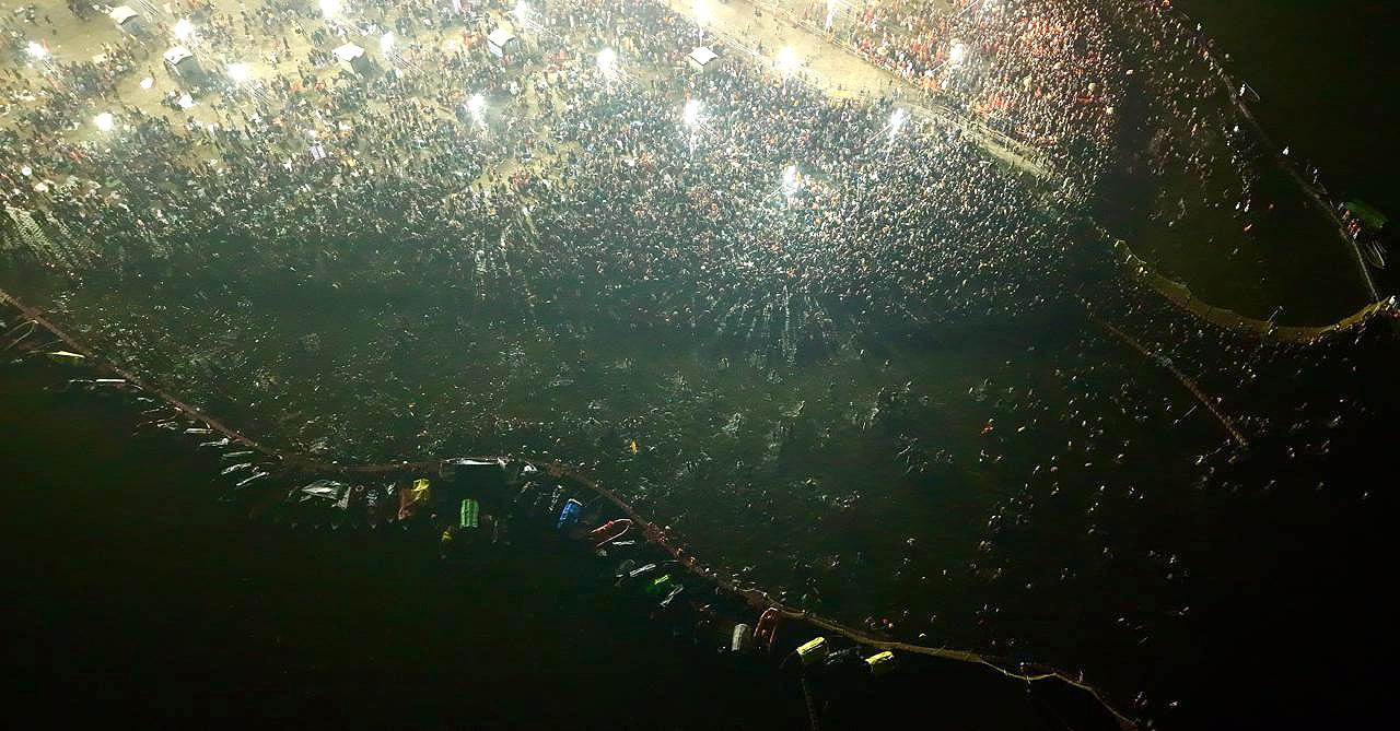 बसंत पंचमी के अवसर पर त्रिवेणी संगम पर पवित्र स्नान करने वाले श्रद्धालुओं पर पुष्प वर्षा की गई. 2 फरवरी तक 34.97 करोड़ से अधिक श्रद्धालु पवित्र स्नान कर चुके हैं.