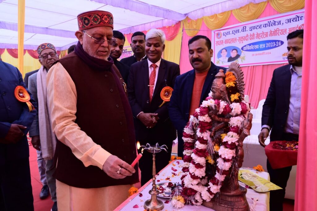 समारोह की अध्यक्षता कर रहे उत्तर प्रदेश प्रधानाचार्य परिषद के संरक्षक श्रीनिवास शुक्ला ने कहा कि धरती पर पैदा होने वाला सभी व्यक्ति वंदनीय होता है उसमें जब राम समाहित होते हैं,तो उसकी महत्ता बढ़ जाती है।उन्होंने सभी को एक समान भाव से देखने और उत्कृष्ट कार्य करने के लिए प्रेरित किया।स्वागत संबोधन प्रस्तुत करते हुए प्रधानाचार्य डॉ. मणि शंकर तिवारी ने कहा कि जीवन में सफलता तभी परिलक्षित होती है जब उसमें सतत विकास होता रहे।उन्होंने हो रहे विकास की संभावनाओं की सार्थकता पर भी अपनी बात कही।उन्होंने छात्रों को प्रेरित किया हुए शिक्षा प्राप्त कर यूं ही देश और प्रदेश का नाम गौरवान्वित करते रहे।अतिथियों ने सात सौ छात्रों की क्षमता का राघव सभागार और रूफ़ टॉप पावर सोलर प्लांट का लोकार्पण किया।इसके पहले विद्यालय के शिक्षक डॉ. देवेंद्र कुमार मिश्रा ने विद्यालय के इतिहास पर प्रकाश डाला।समारोह का संचालन विद्यालय के शिक्षक विवेकानंद पाण्डेय और उनके नेतृत्व में छात्र सुशांत सिंह और शशांक त्रिपाठी ने किया।धन्यवाद ज्ञापन शिक्षा अभिभावक संघ के अध्यक्ष डॉ घनश्याम यादव ने किया।मुख्य अतिथि खन्ना सहित सभी अतिथियों ने विद्यालय की पत्रिका सौरभ का विमोचन किया। विद्यालय के प्रबंधक पुनीत मेहरोत्रा,प्रधानाचार्य डॉ तिवारी व सेवानिवृत्त प्रधानाचार्य डॉ वीरेंद्र कुमार त्रिपाठी ने मुख्य अतिथि वित्त एवं संसदीय कार्य मंत्री सुरेश खन्ना,समारोह अध्यक्ष संरक्षक उत्तर प्रदेश प्रधानाचार्य परिषद श्रीनिवास शुक्ला,बीकापुर विधायक डॉ अमित सिंह चौहान, जिला विद्यालय निरीक्षक डॉ राजेश कुमार आर्य,प्रधानाचार्य परिषद के प्रदेश महामंत्री डॉ रविंद्र त्रिपाठी और माध्यमिक शिक्षा के वित्त एवं लेखाधिकारी वीरेश वर्मा सहित प्रधानाचार्य राजकीय इंटर कॉलेज डॉ सुरेंद्र नाथ तिवारी,राम निहोर, प्रधानाचार्य राम प्रिया शरण सिंह, डॉ रामकृष्ण मिश्रा,त्रियुग नारायण तिवारी व सेवानिवृत्त प्रधानाचार्य डॉ राम सुरेश मिश्रा को मंच से सम्मानित किया।इस दौरान विद्यालय के छात्रों ने मोटिवेशनल सॉन्ग,बसंती गीत, कविता पाठ,लोकगीत,भजन, पखवाज वादन और कव्वाली की शानदार प्रस्तुति की।प्रमुख रूप से साकेत महाविद्यालय के प्रधानाचार्य डॉ अभय कुमार सिंह, मनूचा महिला महाविद्यालय की प्रधानाचार्य डॉ मंजूषा मिश्रा, शिक्षक अभिभावक संघ के पूर्व अध्यक्ष रमाकांत पांडेय,जसराज वर्मा,विभिन्न विद्यालयों के प्रधानाचार्य,शिक्षक और छात्र मौजूद रहे।इस दौरान छात्रों को विभिन्न पुरस्कार प्रदान किए गए जिसमें निबंध प्रतियोगिता, वाद विवाद,भाषण,सुलेख,हिंदी श्रुति लेख,अंताक्षरी,काव्य पाठ, संगीत,स्काउट,खेलकूद और खेल में उत्कृष्ट प्