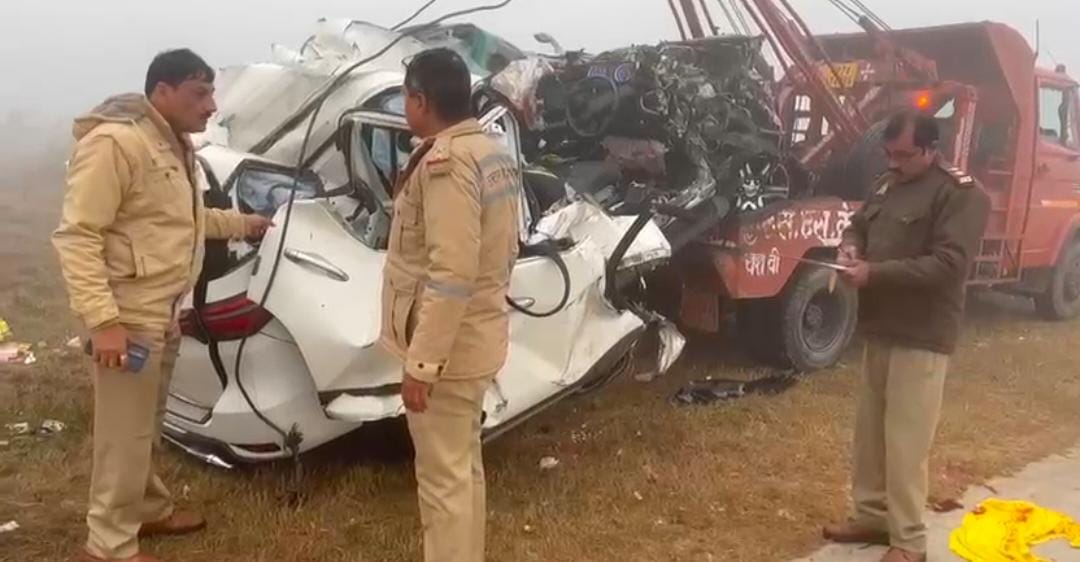 बांगरमऊ/उन्नाव , समृद्धि न्यूज। बांगरमऊ कोतवाली क्षेत्र में आगरा लखनऊ एक्सप्रेस वे पर मंगलवार को सुबह एक दर्दनाक हादसे में चार यात्रियों की मौत हो गई। लखनऊ की ओर जा रही तेज रफ्तार फार्च्यून कार का दाहिना टायर अचानक फट जाने से कार हवाई पट्टी पर डिवाइडर के लिए रखे अस्थाई पत्थरों से जा टकराई। टक्कर इतनी तेज थी कि कार के परखच्चे उड़ गए और चालक सहित कार सवार चार लोगों की मौत हो गई। सूचना पर पहुंची यूपीडा रेस्क्यू टीम और पुलिस ने चारों शवों को पोस्टमार्टम हेतु जिला अस्पताल भेज दिया।