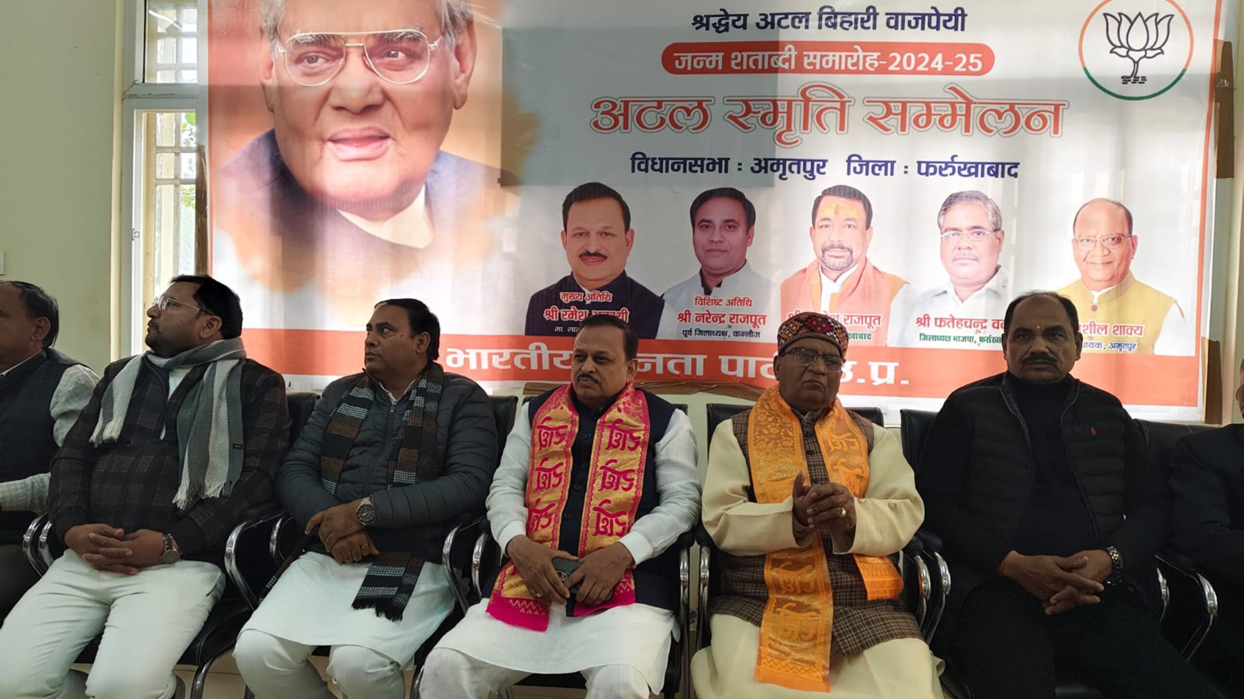 नरेंद्र राजपूत ने पूर्व प्रधानमंत्री अटल बिहारी वाजपेयी को याद करते हुए कहा कि उन्होंने सभी को साथ लेकर चलने का काम किया। उन्होंने अटल बिहारी वाजपेयी के विचारों को कभी न भूलने की बात कही। उन्होंने उपस्थित लोगों से फॉर्म 6 भरकर सभी के वोट बनवाने और आगामी पंचायत चुनावों में भाजपा की जीत सुनिश्चित करने का आग्रह किया। सांसद रमेश अवस्थी ने गंगा नदी से अपने गहरे जुड़ाव का उल्लेख किया और कानपुर तथा फर्रुखाबाद के बीच मजबूत रिश्ते पर प्रकाश डाला। उन्होंने कहा कि कानपुर की जीत में फर्रुखाबाद का बड़ा योगदान रहा है। अवस्थी ने बताया कि उनके जीवन में अटल बिहारी वाजपेयी से तीन बार मुलाकात हुई थी। उन्होंने भारत की अर्थव्यवस्था के चौथे स्थान पर पहुंचने का जिक्र करते हुए कहा कि वह दिन दूर नहीं जब भारत तीसरे स्थान पर होगा। उन्होंने प्रधानमंत्री नरेंद्र मोदी द्वारा अटल बिहारी वाजपेयी के सपनों को साकार करने की बात कही और कहा कि विरोधी आज भी मुकेश राजपूत की जीत से परेशान हैं। रमेश अवस्थी ने लोगों से कहा कि यदि उन्हें कोई काम हो तो वे उन्हें याद करें। उन्होंने अटल बिहारी वाजपेयी की कविताओं में छिपे संदेश का भी जिक्र किया कि वे हार को कभी हार नहीं मानते थे। इस दौरान मुनेश मिश्रा, चेयरमैन अनिल राजपूत, राजीव रंजन, अतुल दीक्षित, मंडल अध्यक्ष कमल भारद्वाज, संतोष राजपूत, आदेश राठौर, अनुराग सिंह, विक्रम राजपूत, शिव मंगल सिंह आदि लोग मौजूद रहे।
