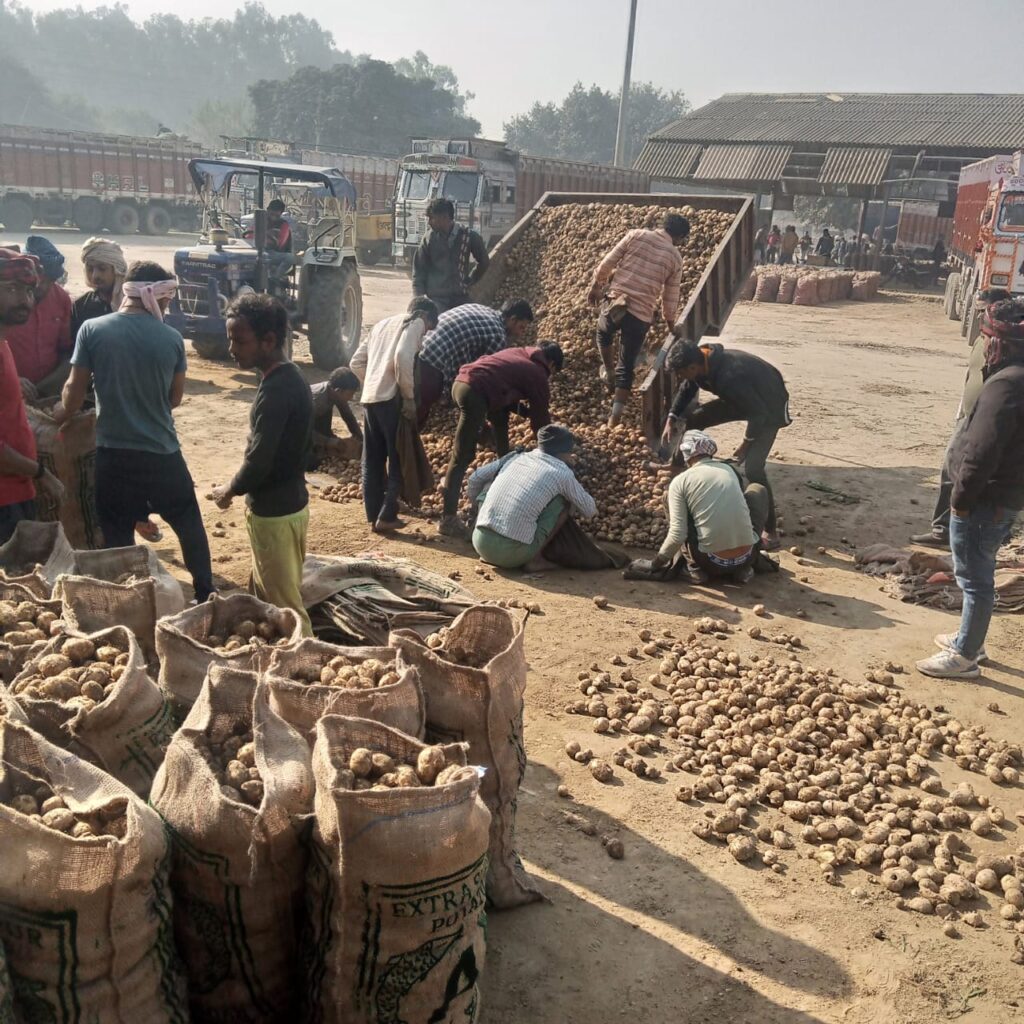 फ़र्रूख़ाबाद समृद्धि न्यूज़।जिलाधिकारी के निर्देश पर आज मंडी सचिव दिव्यांशू शुक्ला ने बोली लगवाकर बिक्री शुरू करवाई , आज आलू मंडी सातनपुर फर्रुखाबाद में आमद कम , लगभग 70 मोटर रही , भाव 301 से 341 रुपए पैकट में व खुला आलू 551 से 621 रुपए कुंतल में खरीदारी हुई , बोली पर बिक्री से 20 से 50 रुपए कुंतल का उछाल रहा , जो 611 से 671 रुपए कुंतल तक बिका ।