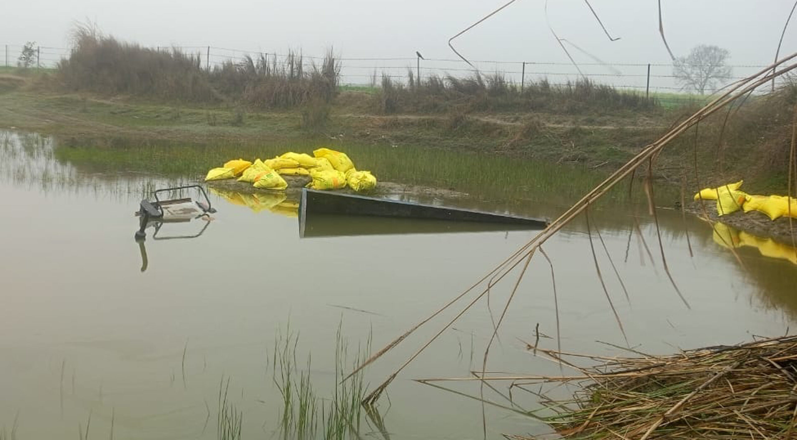 गौशाला के लिए दाना लेकर आ रहा ट्रैक्टर तालाब में डूबा
