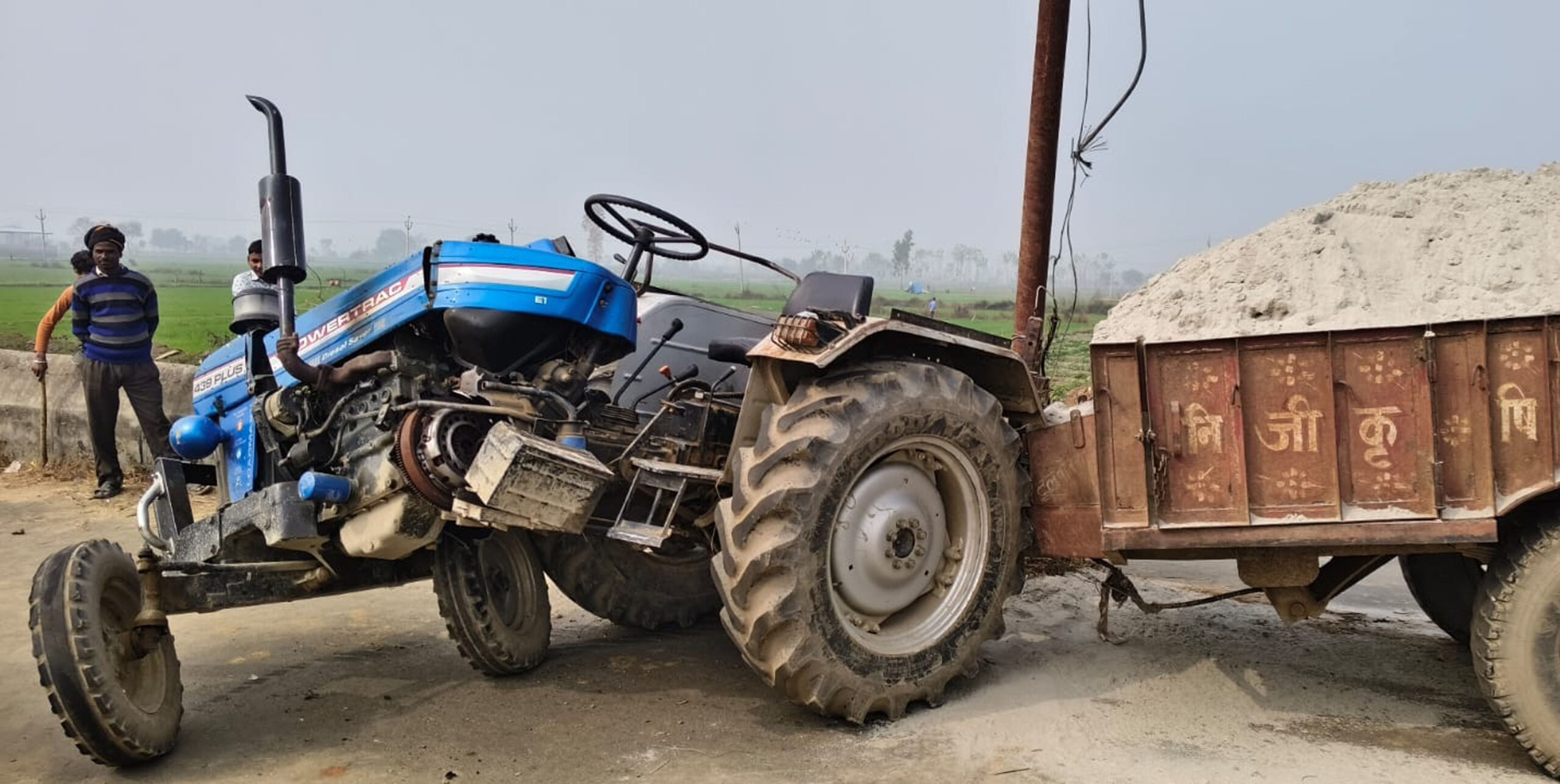 अवैध खनन कर जा रहा ट्रैक्टर डिवाइडर से टकराया, दो हिस्सों में टूटा