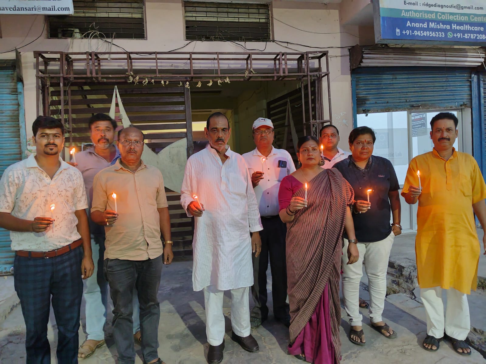 व्यापारियों ने शोकसभा कर कैंडिल जलाकर शहीद व्यापारियों को दी श्रद्धांजलि