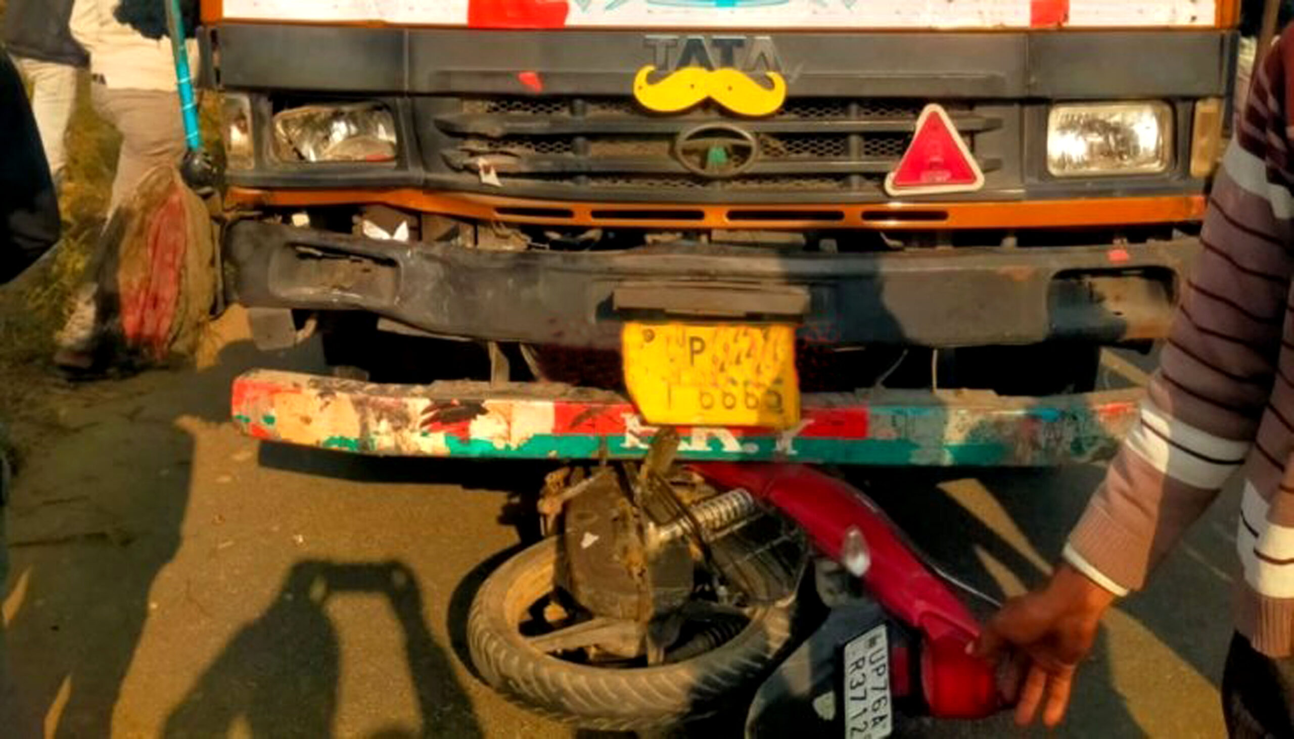 डीसीएम की टक्कर से 50 मीटर तक घिसटती चली गयी बाइक
