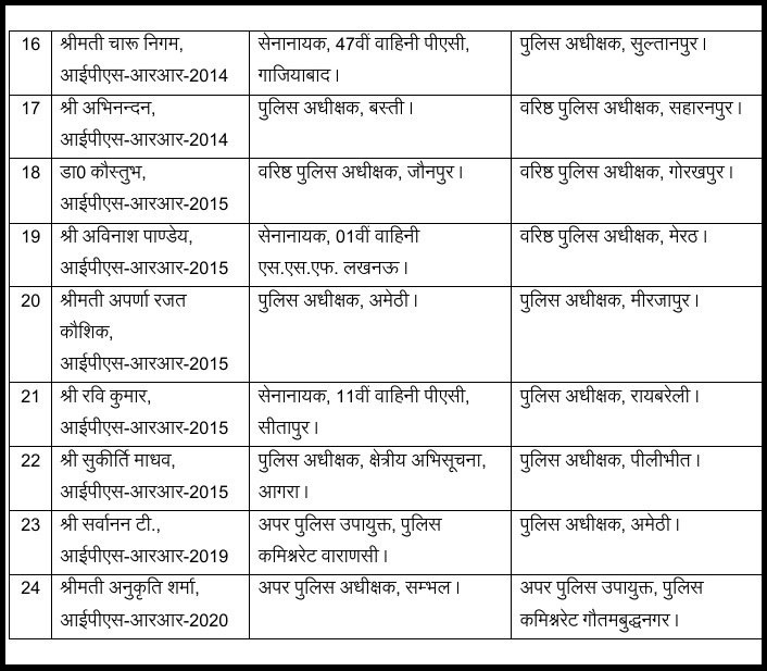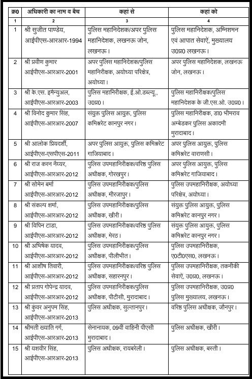 यूपी में 24 IPS अफसरों का तबादला