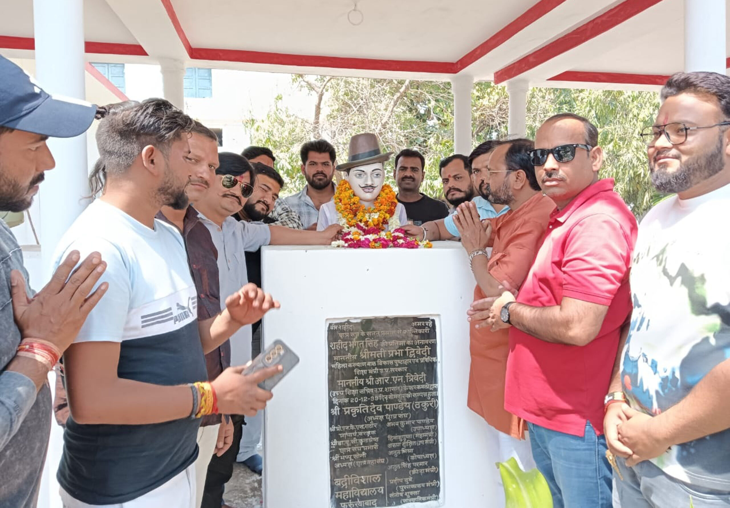 फर्रुखाबाद, समृद्धि न्यूज। अखिल भारत हिन्दू महासभा द्वारा बद्री विशाल महाविद्यालय में महान क्रांतिकारी सरदार भगत सिंह, सुखदेव व राजगुरु को याद करते हुए पुष्पांजलि अर्पित की गई। हिन्दू महासभा के युवा प्रदेश अध्यक्ष विमलेश मिश्रा ने कहा कि २३ मार्च का दिन ऐतिहासिक है। आज के ही दिन भारत माता के सच्चे सपूत स्वतंत्रता और स्वाभिमान के प्रतीक आजादी के महानायक सरदार भगत सिंह, सुखदेव व राजगुरु को फांसी दी गई थी। अंगे्रजी हुकूमत इन क्रांतिकारियों से डरती थी। ऐसे वीर सपूतों के शहीद दिवस को कोई भूल नहीं सकता है। कार्यकर्ताओं ने पहुंचकर भगत सिंह की प्रतिमा पर माल्यार्पण किया। इस मौके पर हिन्दू महासभा के जिलाध्यक्ष क्रांति पाठक, सौरव मिश्रा, अंकित तिवारी, सचिन शर्मा, अजय दुबे, भान प्रताप सिंह, राजू यादव, रोहित दीक्षित, शिवम मिश्रा, रोहित राठौर आदि लोग मौजूद रहे।