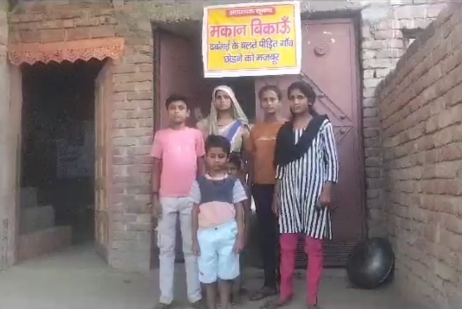 प्रधान पति की दबंगई से परेशान विधाराम के परिवार ने मकान के बाहर लगाए बिकाऊ के पोस्टर