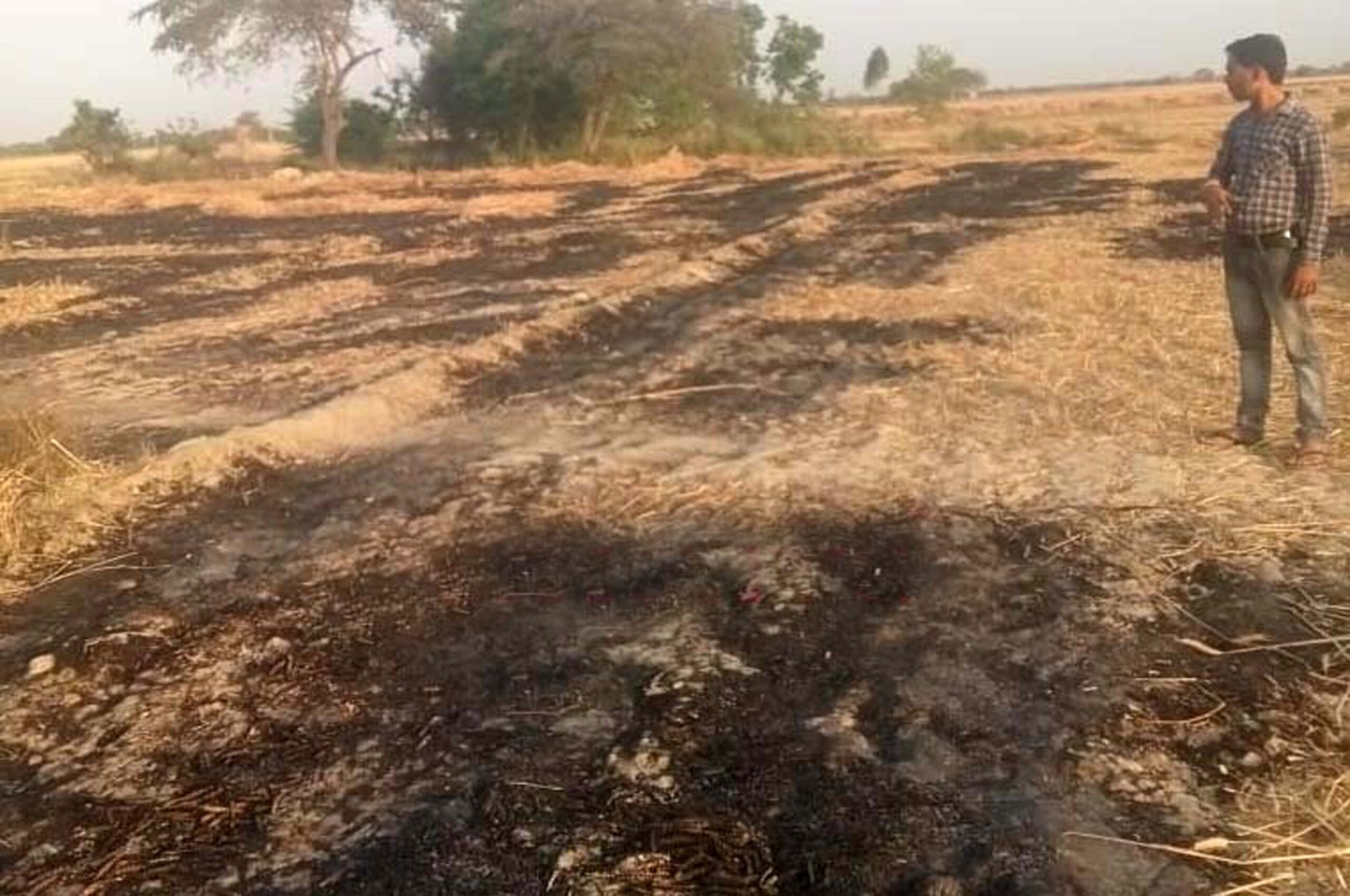 हाईटेंशन लाइन की चिंगारी से दो बीघा गेहूं जलकर राख