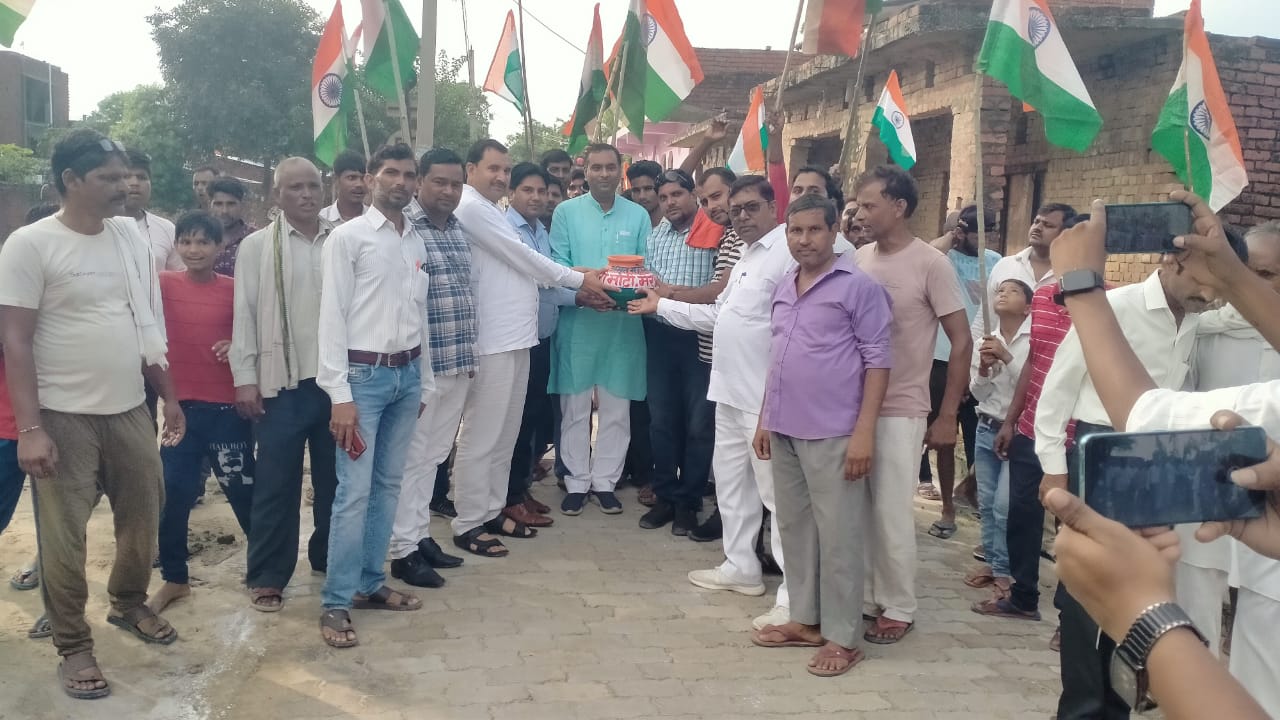 नवाबगंज/शमशाबाद, समृद्धि न्यूज। प्रधानमंत्री की प्रेरणा से देश के वीर सपूतों के स्मृति में मेरी माटी-मेरा देश अभियान कार्यक्रम के तहत नवाबगंज नगर पंचायत अध्यक्ष ने कलश लेकर माटी व चावल एकत्रित किये। वार्ड नंबर 9 रामनगर रायपुर में कलश लेकर चावल का संग्रह करते पूर्व जिला महामंत्री संदीप शाक्य, नगर पंचायत अध्यक्ष अनिल राजपूत, अधिशासी अधिकारी त्रिवेंद्र कुमार, मंडल अध्यक्ष कमल भारद्वाज, योगेंद्र सिंह राठौड,़ शिवमंगल सिंह, शिव प्रताप सिंह, हेम सिंह लोधी, अवनीश कौशल व हुसैनपुर बांगर में जिला उपाध्यक्ष जय गंगवार, ग्राम प्रधान दिलीप सिंह, अवधेश सिंह ने प्रत्येक घर से पवित्र मिट्टी, अक्षत अमृत कलश में एकत्रित करने में सहयोग किया। इस अवसर पर नगर पंचायत अध्यक्ष अनिल राजपूत ने बताया कि यह मिट्टी देश के वीर सपूतों की याद में दिल्ली में अमृत वाटिका के होने वाले निर्माण में लगाई जायेगी।