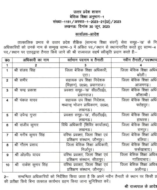 उतर प्रादेशउत्तर प्रदेश शासन ने एक दर्जन बेसिक शिक्षा अधिकारियों के किए स्थानांतरण samriddhisamacharJune 30, 2023June 30, 202301 mins समृद्धि न्यूज । जानकारी के अनुसार उत्तर प्रदेश शासन ने देर रात बेसिक शिक्षा अधिकारियों के फेरबदल। Post navigation Previous: राजेश कुमार सिंह सचिव गाजियाबाद विकास प्राधिकरण गाजियाबाद बनाए गएNext: शव ले जाने को लेकर ससुराली व मायके पक्ष में चले ईंट पत्थर, कई घायल Leave a Reply Cancel replyYour email address will not be published. Required fields are marked *Comment * Name * Email * Website Save my name, email, and website in this browser for the next time I comment.