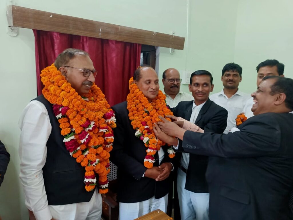 फर्रुखाबाद, समृद्धि न्यूज। अपर जिला मजिस्टे्रट सुभाष चन्द्र प्रजापति ने बताया कि जिला शासकीय अधिवक्ता राजेश अग्निहोत्री की आयु ६० वर्ष हो जाने पर उनके इस पद से पदमुक्त होने की स्थिति में सहायक जिला शासकीय अधिवक्ता दीवानी विजय बहादुर सिंह पाल को कार्यकारी जिला शासकीय अधिवक्ता पदीय दायित्व दिया गया है। एक आयोजन के दौरान राजेश अग्निहोत्री के पदमुक्त होने पर उन्हें माल्यार्पण करके विदाई दी गई। वहीं विजय बहादुर पाल का अधिवक्ताओं ने माल्यार्पण कर स्वागत किया।