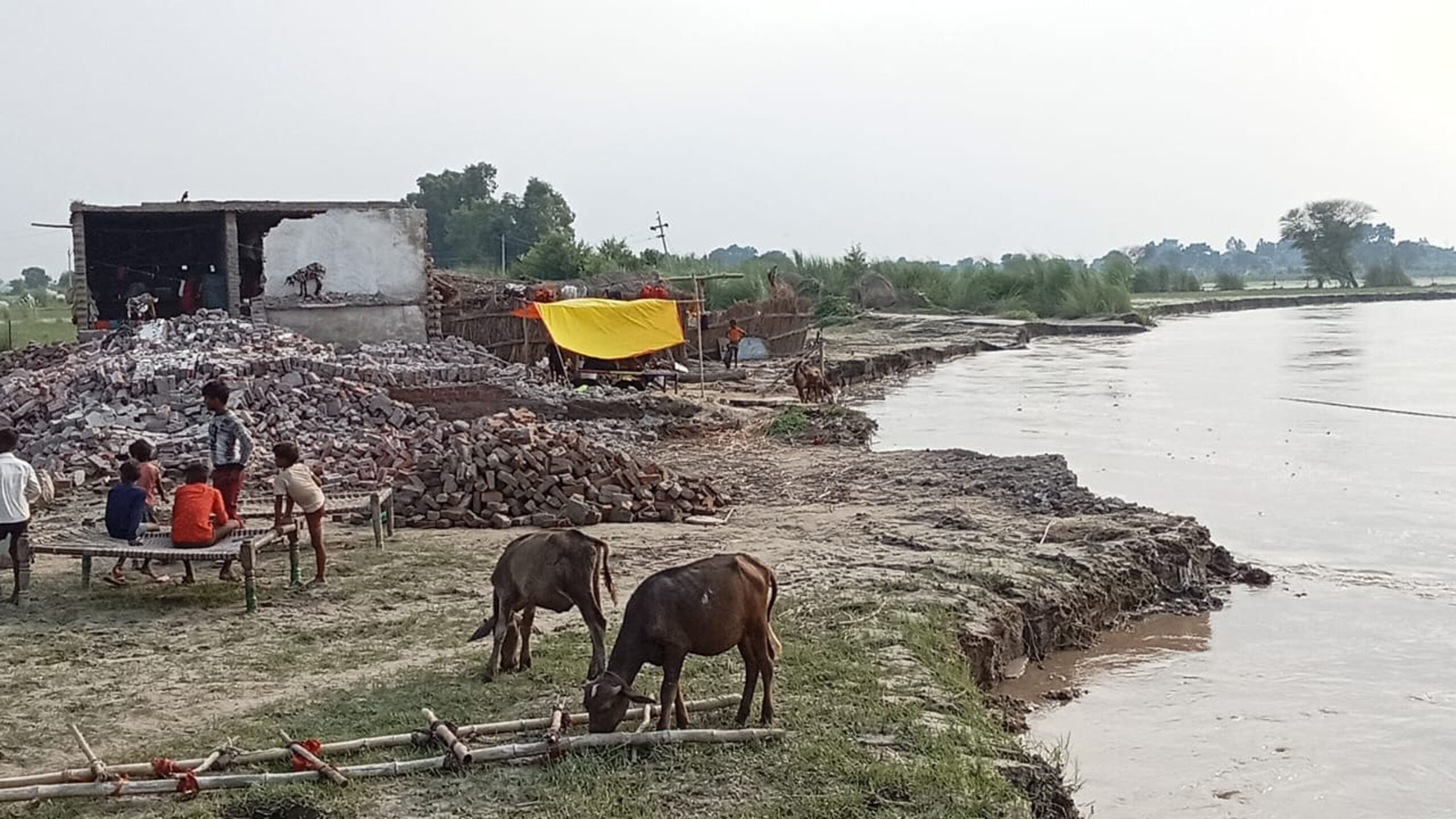 कंपिल, समृद्धि न्यूज। पिछले एक पखवारे से कम वर्षा होने और बैराजों से कम पानी छोड़े जाने से बाढग़्रस्त क्षेत्रों की हालत में थोड़ा बहुत सुधार होना शुरू हुआ था, लेकिन कटान शुरू होने से गाँवों में फिर संकट के बादल घिर आए है। कटान और बीमारी झेल रहे ग्रामीण एक बार फिर पानी बढऩे से मकान तोडक़र सुरक्षित स्थानों की ओर पलायन करने लगे हैं।