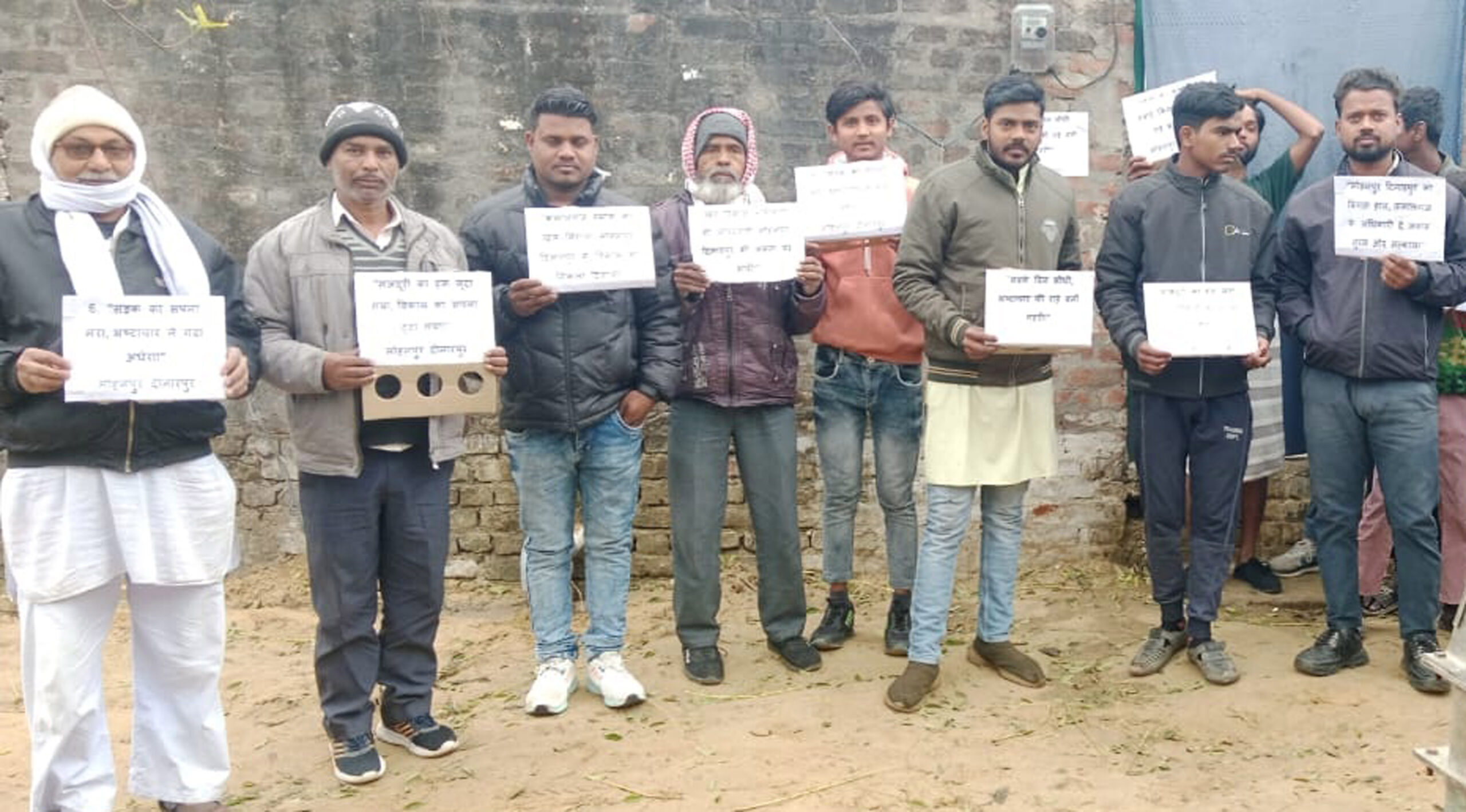 सडक़ निर्माण व मजदूरी भुगतान में अनियमितता के खिलाफ ग्रामीणों ने किया प्रदर्शन