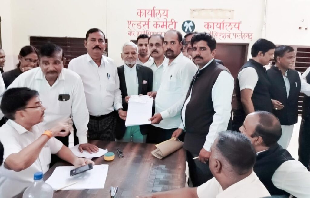 शमशाबाद, समृद्धि न्यूज। थाना क्षेत्र ग्राम रोशनाबाद निवासी युवा अधिवक्ता विश्व प्रकाश चतुर्वेदी ने जिला बार एसोसिएशन के चुनाव में जिला कार्यकारिणी हेतु अपना नामांकन एल्डर्स कमेटी को दिया। अधिवक्ता विश्व प्रकाश चतुर्वेदी ने कहा वह यह चुनाव पूरी दमदारी के साथ लड़ेंगे तथा अधिवक्ता बंधुओं के सहयोग से चुनाव जीतेंगे। अधिवक्ता के अनुसार नामांकन पत्र में रामशंकर राजपूत एडवोकेट व यादवेंद्र सिंह गंगवार एडवोकेट को प्रस्तावक बनाया गया है। मालूम रहे अधिवक्ताओं के काफी संघर्ष करने के बाद बार एसोसिएशन का चुनाव हो रहा है। अधिवक्ता विश्व प्रकाश चतुर्वेदी ने पूरी दमदारी के साथ चुनाव लडऩे का फैसला किया तथा नामांकन पत्र एल्डर्स कमेटी को सौपा