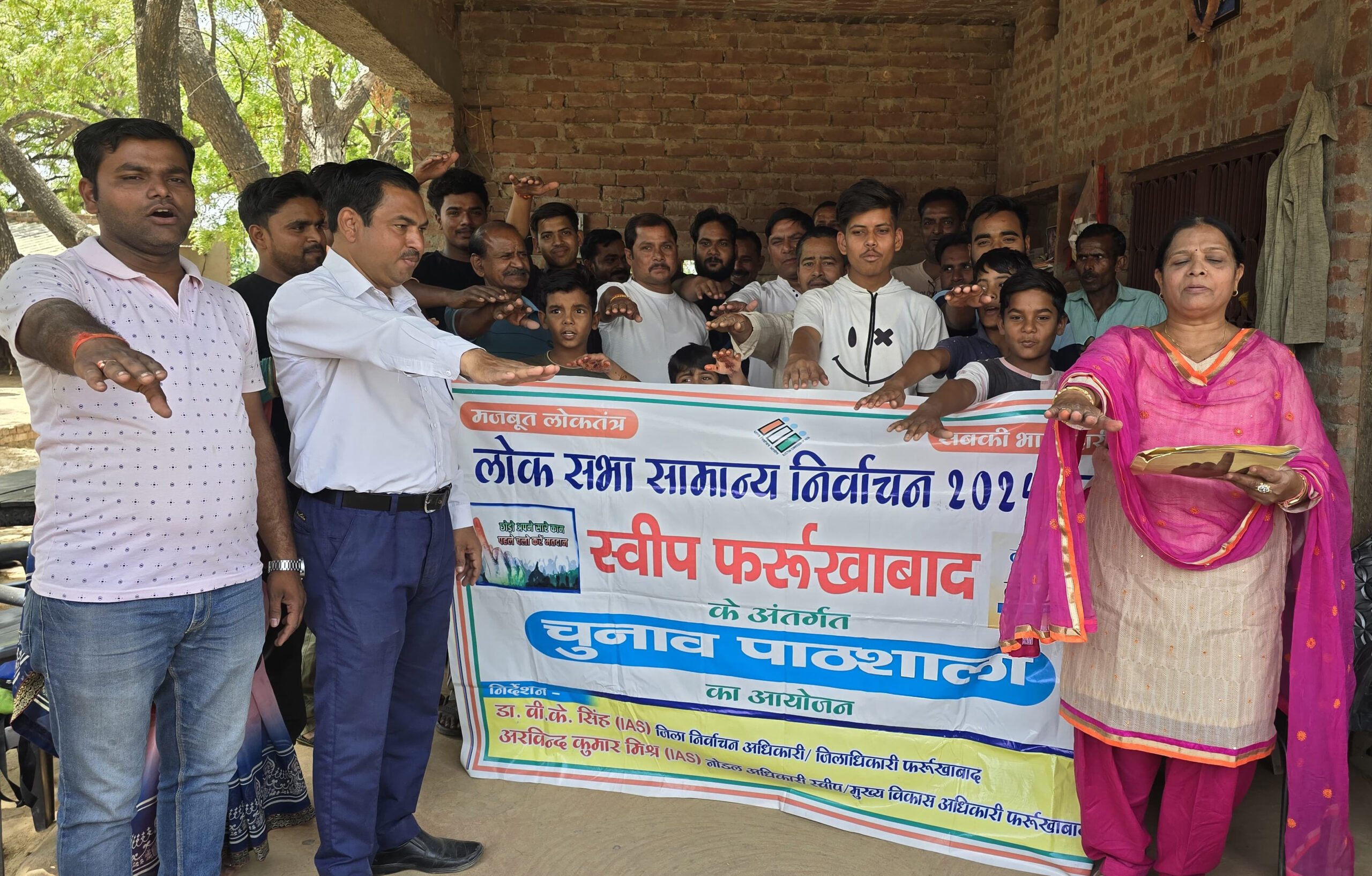 फर्रुखाबाद, समृद्धि न्यूज। जिला निर्वाचन अधिकारी डॉ0 वी0के0 सिंह व मुख्य विकास अधिकारी अरविंद कुमार मिश्रा तथा सहायक अधिकारी नोडल स्वीप जिला बेसिक शिक्षाधिकारी गौतम प्रसाद के आदेशानुसार चल रहे मतदाता जागरूकता अभियान के अंतर्गत रविवार को ग्राम धन्सुआ में मतदाता जागरूकता कार्यक्रम के अंतर्गत चुनाव पाठशाला का आयोजन किया गया। महिला मतदाता जागरूकता प्रभारी भारती मिश्रा ने उपस्थित ग्राम वासियों से अपील की कि संविधान ने सभी को यह अधिकार दिया है कि वह अपना मत देकर अपनी सरकार चुनें। जिसके माध्यम से देश की, समाज की तथा स्वयं की उन्नति का मार्ग प्रशस्त हो इसलिए 13 मई को मतदान अवश्य करें। स्वीप कोऑर्डिनेटर सुधीर कुशवाहा ने कहा कि हमें प्रत्येक दशा में यह सुनिश्चित करना है कि हमारा मतदान अवश्य हो। वैभव सोमवंशी ने स्लोगन के माध्यम से सभी को जागरूक किया। इस अवसर पर शिवपाल राजपूत, शिवांशु राजपूत, शिवाकांत राजपूत, संजय यादव, राजू यादव, अर्पित, सत्यम, शिवांशु, विकास, अनूप यादव, विजय, अजय, बबलू कटियार, जितेंद्र पाल, इंद्रेश यादव, रामजी, निर्मल, नैतिक, अजीत, राजवीर, योगेश, सरल, माया देवी, सुषमा, रानी, कृष्णा आदि मौजूद रहे।