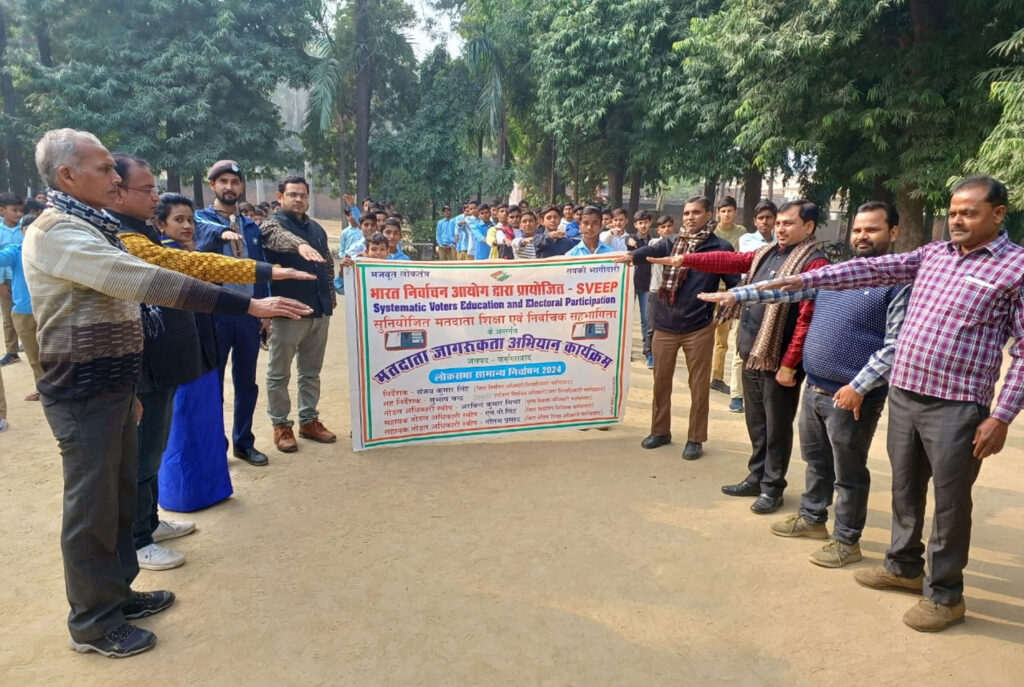 फर्रुखाबाद, समृद्धि न्यूज। लक्ष्मी यदुनंदन महाविद्यालय में स्वीप कार्यक्रम के तहत छात्र-छात्राओं को जागरूक किया गया। विद्यार्थियों को सुव्यवस्थित मतदाता शिक्षा एवं निर्वाचक सहभागिता के बारे में बताया गया। महाविद्यालय के प्राचार्य डॉ0 विनय कुमार सिंह ने सभी को मतदाता जागरूकता की शपथ दिलाई। उन्होने कहा कि मजबूत लोकतंत्र के लिए सबकी भागीदारी जरूरी है। संचालन करते हुए डॉ0 मनीषा सक्सेना ने निर्वाचकों को सजग करने और उन्हें निर्वाचन प्रक्रिया से संबंधित बुनियादी जानकारी से लैस करने की बात कही। ब्लॉक स्काउट मास्टर योगेश कुमार ने नए मतदाता बनने के लिए फार्म 6 के विषय में पूर्ण जानकारी दी। उन्होंने रोवर्स रेंजर्स के विभिन्न आयामों से भी विद्यार्थियों को अवगत कराया। इस अवसर पर महाविद्यालय के स्वीप समन्यवक दिनेश चंद्र, ब्लॉक गाइड कैप्टन ज्योति कुशवाहा, डॉ0 आशीष तिवारी, नरेंद्र मिश्रा, डॉ0 ब्रजेश वर्मा, अरविंद कुमार, सत्यनारायण सिंह, संजीव शुक्ला आदि उपस्थित रहे।