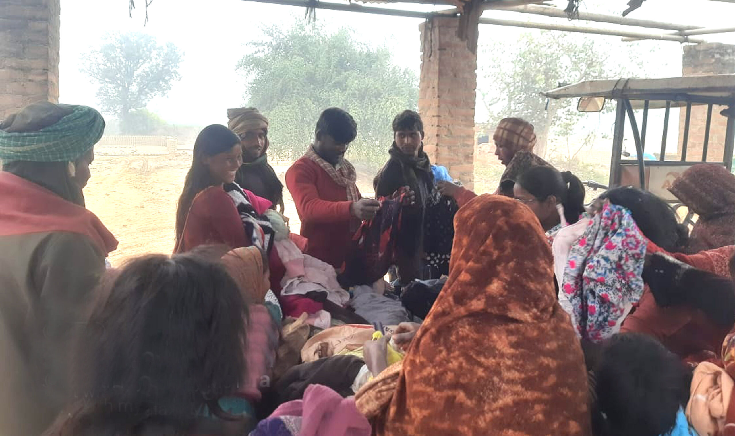 सेवा धर्म समिति द्वारा ईंट भट्टे पर बच्चों को वितरित किये गये गर्म कपड़े