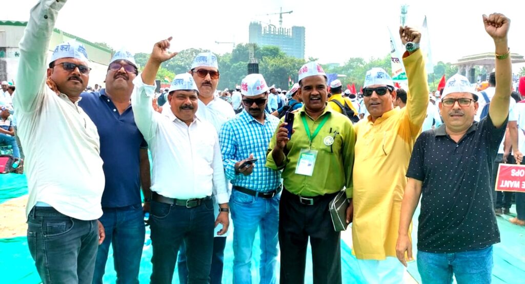 फर्रुखाबाद, समृद्धि न्यूज। बीते १ अक्टूबर को पुरानी पेंशन बहाली को लेकर देशव्यापी आंदोलन दिल्ली के रामलीला मैदान में आयोजित हुआ था। पेंशन बचाओ महाशंखनाद रैली में लाखों लोगों ने प्रतिभाग किया। जनपद फर्रुखाबाद से प्रदेश संयुक्त मंत्री ज्ञानप्रकाश त्रिपाठी के नेतृत्व में सैकड़ों लोग दिल्ली रैली में पहुंचे। वहीं अटेवा के जिलाध्यक्ष नरेन्द्र सिंह जाटव के नेतृत्व में सैकड़ों शिक्षक, कर्मचारी टे्रन से दिल्ली पहुंचे। जिला प्रभारी मुनेन्द्र सिंह मधुवन के साथ कायमगंज के बड़ी संख्या में शिक्षक साथियों ने दिल्ली रैली में आयोजित आंदोलन में भाग लिया।