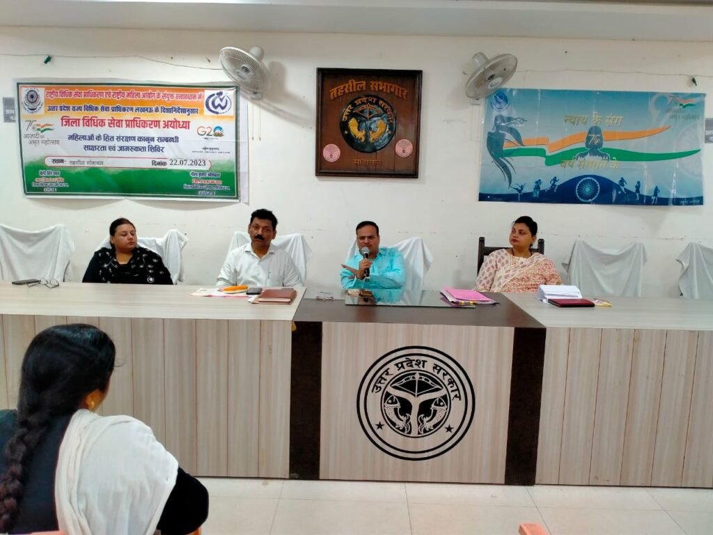 समृद्धि न्यूज़ अयोध्या।उत्तर प्रदेश राज्य विधिक सेवा प्राधिकरण के दिशा निर्देशन में जनपद न्यायाधीश व जिला विधिक सेवा प्राधिकरण अध्यक्ष गौरव कुमार श्रीवास्तव की अध्यक्षता तथा अपर जिला जज व जिला विधिक सेवा प्राधिकरण सचिव शैलेन्द्र सिंह यादव की देख-रेख में शनिवार को विधिक जागरूकता शिविर का आयोजन किया गया।महिलाओं के हितों के संरक्षण हेतु महिला अधिकारों से सम्बन्धित इस महिला केन्द्रित कार्यक्रम का आयोजन सोहावल तहसील सभागार में किया गया।कार्यक्रम में प्राधिकरण सचिव श्री यादव द्वारा महिला अधिकारों के विषय पर विधिक रूप से जागरूक किया गया।उनके द्वारा मौजूद लोगों को महिला अधिकारों एवं पारिवारिक विधिक-विवाह, विवाह-विच्छेद,भरण-पोषण, सम्पत्ति के संबंध में महिलाओं के अधिकार तथा घरेलू हिंसा संबंधी प्राविधानों से महिलाओं को अवगत कराया गया।इसी क्रम में रिसोर्स पर्सन/अधिवक्ता श्रीमती श्वेताराज सिंह ने महिला कर्तव्यों के बारे में विधिक रूप जागरूक किया,सरकार द्वारा चलायी जा रही योजनाओं के बारे में बताया तथा दहेज-मृत्यु,ऐसिड अटैक, अपहरण,रेप,लैगिंक हिंसा, पाक्सों एक्ट संबंधी,कार्यस्थल पर महिलाओं के उत्पीड़न और मातृत्व अवकाश संबंधी विस्तृत जानकारी दी।इस दौरान महिला चिकित्सक श्रीमती फातिमा हसन द्वारा सर्वाईलक कैंसर,महिलाओं के स्वास्थ्य हाईजीन, पीएसपीएनडीटी एक्ट तथा गर्भ धारण के समय लिंग परीक्षण संबंधी जानकारी प्रदान की गयी। इसी क्रम में प्राधिकरण सचिव श्री यादव ने बताया कि समान पारिश्रमिक का अधिकार के अंतर्गत समान पारिश्रमिक अधिनियम के अनुसार अगर बात वेतन या मजदूरी की हो तो लिंग के आधार पर किसी के साथ भी भेदभाव नहीं किया जा सकता है।उन्होंने बताया कि कार्यस्थल पर छेड़छाड़/यौऩ उत्पीड़न से संरक्षण का अधिकार के अंतर्गत काम पर हुए यौन उत्पीड़न अधिनियम के अनुसार आपको यौन उत्पीड़न के खिलाफ शिकायत दर्ज करने का पूरा अधिकार है।श्री यादव ने बताया कि घरेलू हिंसा के खिलाफ अधिकार का अधिनियम मुख्य रूप से पति,पुरूष लिव इन पार्टनर या रिश्तेदारों द्वारा एक पत्नी,एक महिला लिव इन पार्टनर या फिर घर में रह रही किसी भी महिला जैसे मां,बहन पर की गई घरेलू हिंसा से सुरक्षा करने के लिए बनाया गया है,आप या आपकी ओर से कोई भी शिकायत दर्ज करा सकता है। उन्होंने बताया कि मातृत्व संबंधी लाभ के लिए अधिकार के अंतर्गत मातृत्व लाभ कामकाजी महिलाओं के लिए सिर्फ सुविधा नही बल्कि ये उनका अधिकार है, मातृत्व लाभ अधिनियम के तहत एक नई माँ के प्रसव के बाद 12 सप्ताह (तीन महीने) तक महिला के वेतन में कोई कटौती नहीं की जाती और वो फिर से काम शुरू कर सकती है।श्री यादव ने बताया कि कन्या भ्रूण हत्या के खिलाफ अधिकार के अंत