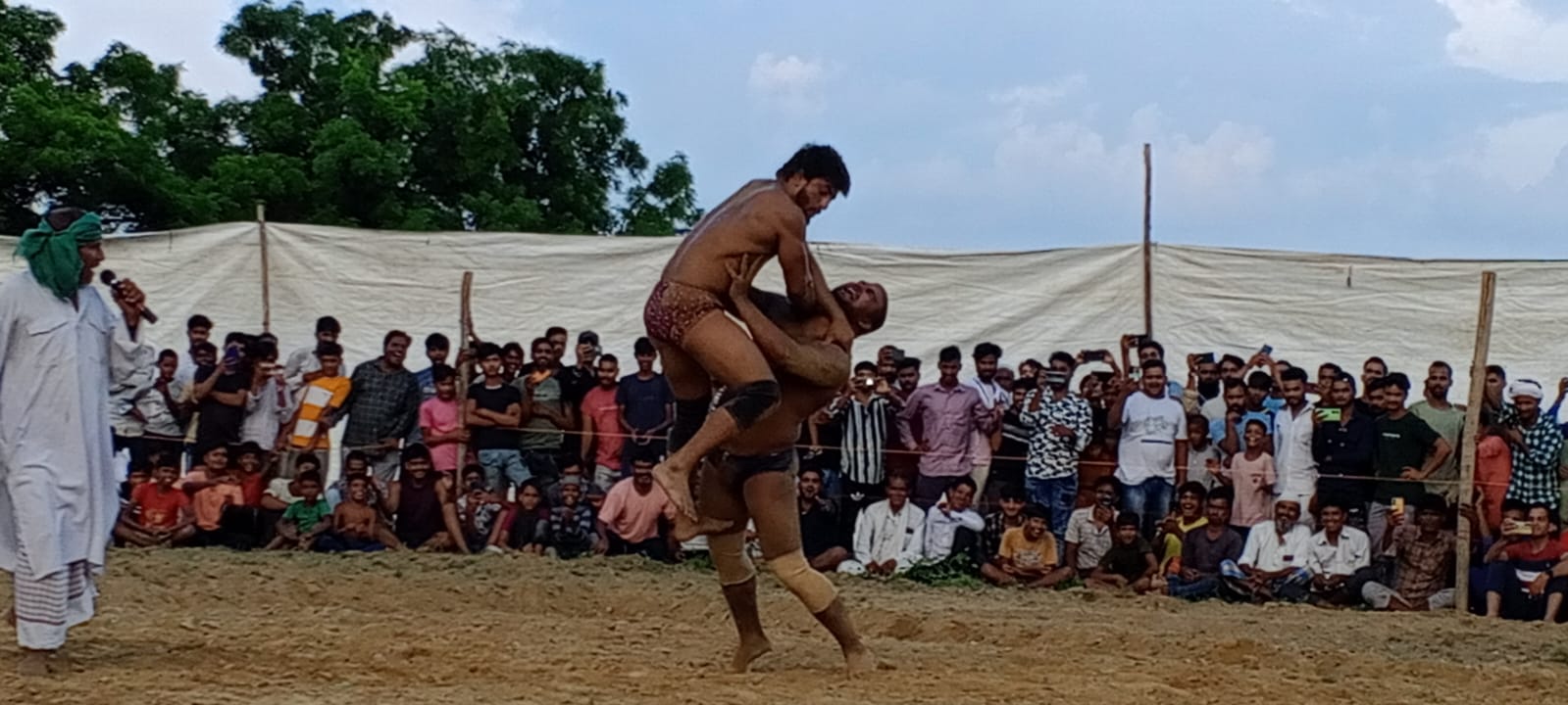 दूसरी कुस्ती पंजाब से आये पहलवान मौसम अली व मेरठ से आये मुन्ना चौधरी के बीच कुस्ती कराई गई जो दोनों पहलवान करीब आधा घंटा दांव पेंच खेलते रहने के बाद पंजाब के मौसम अली ने मुन्ना चौधरी को पटकनी देकर जीत अपने नाम दर्ज कर ली दंगल के आयोजक रूखसाद पहलवान ने दंगल में कुश्ती के दांव पेंच के विजेता व विजेता दोनों पहलवानों को सम्मानित किया गया हजारों की संख्या में दर्शकों ने खूब आनंद लिया ।