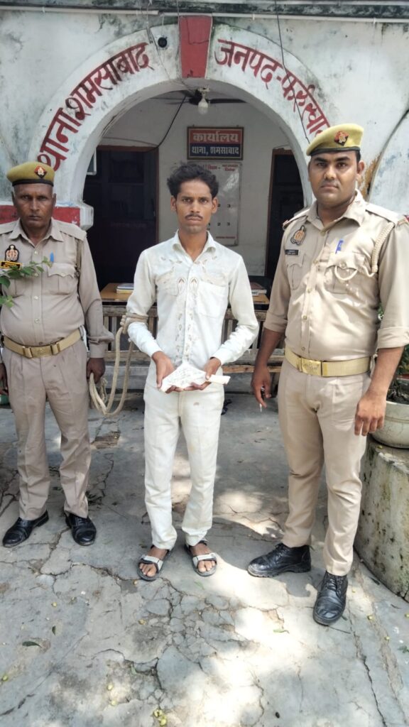रविवार को शमशाबाद थानाध्यक्ष बलराज भाटी, उपनिरीक्षक विशेष कुमार ने मुखबिर की सूचना पर एक संदिग्ध युवक को गिरफ्तार कर लिया। पूछताछ के दौरान उसने अपना नाम संजय राजपूत पुत्र खुशीराम निवासी प्रहलादपुर बताया। तलाशी में उसके पास से एक ३१५ बोर तमंचा व एक जिंदा कारतूस बरामद हुआ। पुलिस ने आरोपी के विरुद्ध मुकदमा दर्ज कर जेल भेज दिया।