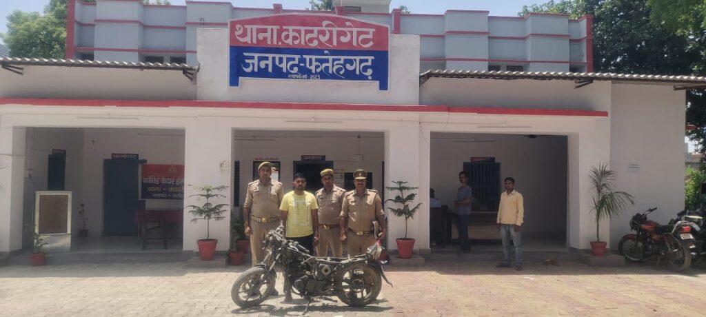 फर्रुखाबाद, समृद्धि न्यूज। अपराध एवं अपराधियों के विरुद्ध चलाए जा रहे अभियान के क्रम में थाना कादरीगेट पुलिस ने चोरी के मामले में वांछित युवक को गिरफ्तार कर जेल भेज दिया। गुरुवार को कादरीगेट पुलिस चेकिंग अभियान चला रही थी, तभी एक संदिग्ध को गिरफ्तार कर लिया। पूछताछ में उसने अपना नाम लखन पुत्र नेत्रपाल निवासी नोनमगंज बताया। जांच पड़ताल में पता चला कि आरोपी चोरी के मामले में वांछित चल रहा था। आरोपी के पास से एक बाइक बरामद हुई। पुलिस ने मुकदमा दर्ज कर जेल भेज दिया।