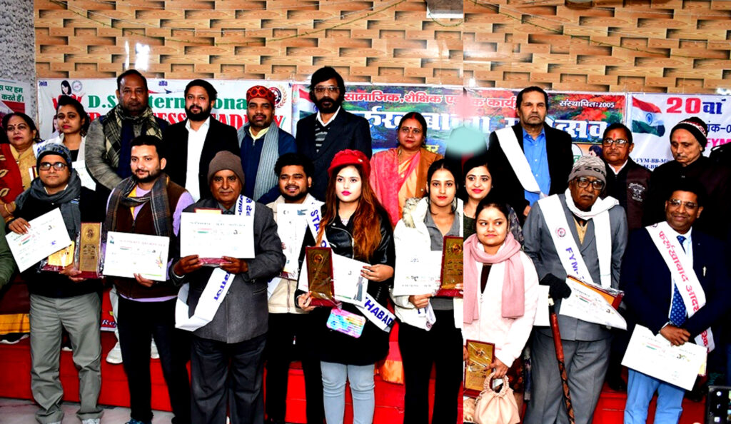 फर्रुखाबाद, समृद्धि न्यूज। 20वां फर्रुखाबाद युवा महोत्सव के कार्यक्रमों की श्रृंखला में गुरुवार को फर्रुखाबाद युवा महोत्सव समिति सभागार में आयोजित कार्यक्रम में सामाजिक, शैक्षिक एवं साहित्यिक क्षेत्र में उत्कृष्ट कार्य करने वाली प्रमुख हस्तियों को मुख्य अतिथि जिला सहकारी बैंक के अध्यक्ष कुलदीप गंगवार व भाजपा जिलाध्यक्ष रूपेश गुप्ता, भाजपा महिला मोर्चा की जिलाध्यक्ष बबिता पाठक ने सम्मानित किया।