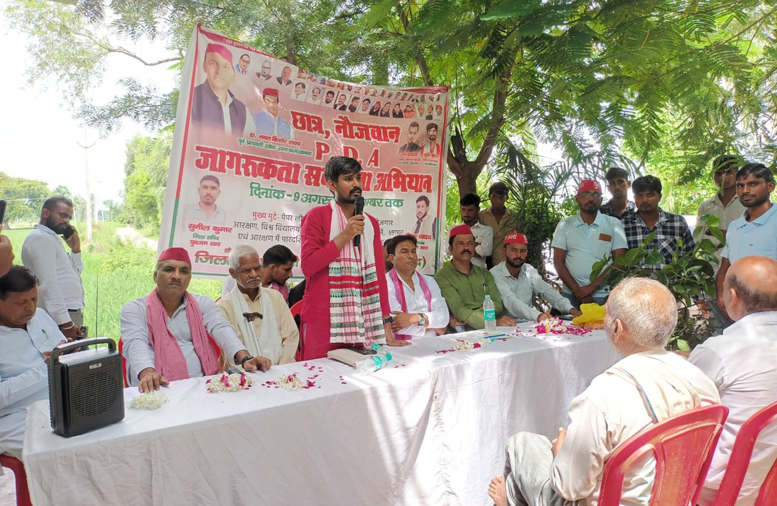 फर्रुखाबाद, समृद्धि न्यूज। समाजवादी पार्टी के राष्ट्रीय अध्यक्ष सशक्त पीडीए के शिल्पकार अखिलेश यादव के निर्देशानुसार व प्रदेश अध्यक्ष श्यामलाल पाल की स्वीकृति से एवं समाजवादी छात्र सभा के राष्ट्रीय अध्यक्ष डॉ0 इमरान के नेतृत्व में जनपद की विधानसभा कायमगंज के सेक्टर मई रशीदपुर, जिराउ और सितवनपुर पिथु के कई गांवों में जाकर छात्र-नौजवान पीडीए जागरूकता अभियान के तहत छात्रसभा के राष्ट्रीय सचिव व प्रभारी सुमित कन्हैया के द्वारा संचालित किया गया। कार्यक्रम में डॉ0 नवल किशोर शाक्य मुख्य अथिति के रुप में मौजूद रहे। समाजवादी युवजन सभा के जिलाध्यक्ष शिवम यादव व उनकी टीम नगर एवं विधानसभा कार्यकारिणी के पदाधिकारी मौजूद रहे। प्रदेश सचिव मंदीप यादव ने पीडीए के तहत लोगों को जागरुक किया। इस मौके पर रोहित पाल, नितेश कुमार, मनोज राजपूत, अजय शाक्य, सुनील कुमार, विनोद यादव, अजीत यादव, अवनीश शाक्य, आकाश यादव, फाजिल, अनिरुद्ध, नागेन्द्र, आकाश कुमार, राजीव कुमार अंबेडकर, राजकुमार प्रजपति, रविन्द्र प्रजापति, निशु चौहान, शैलेन्द्र चौहान, डॉ0 जसवीर सिंह, फूल सिंह जाटव, चंद्रपाल सिंह जाटव, गेंदनलाल प्रजापति, डॉ0 हरिओम पाल, सुलतान सिंह यादव, भूरे सक्सैना, अतर सिंह यादव, संदीप सकसेना, गिरिश सक्सेना, रिंकू सक्सेना आदि उपस्थित रहे।